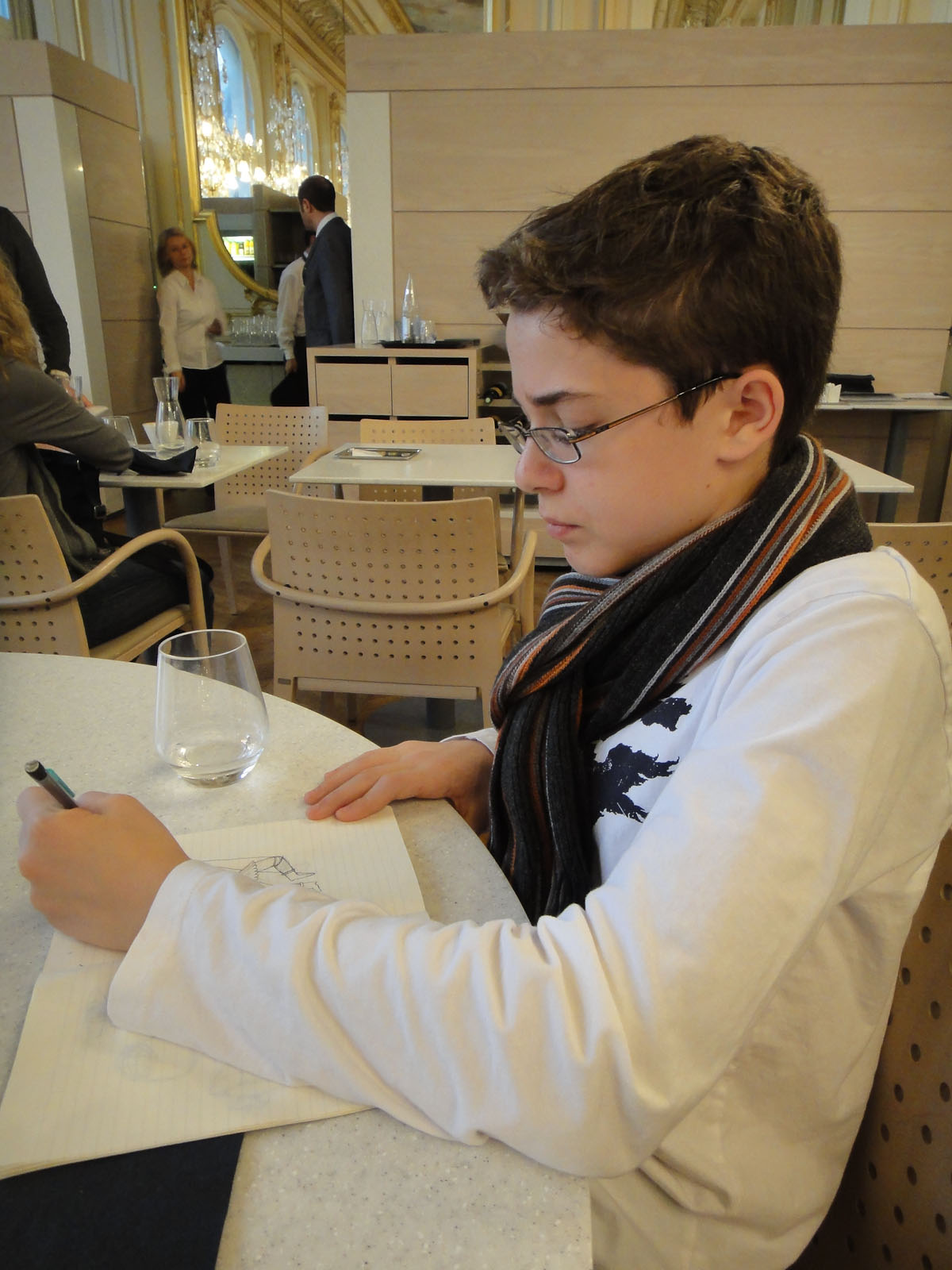 When we got back down we met Mom and Dad and told them how disappointed we all were that our legs didn’t sting as much as we had hoped. It wasn’t nearly as hard as we thought. Probably because we had to stop every ten seconds so Carter could take a picture. But just because it wasn’t as hard as I thought, didn’t mean it didn’t leave my legs trembling. We were all hungry, so we caught a bus and went to lunch. I checked climbing the Eiffel Tower stairs off my mental list.