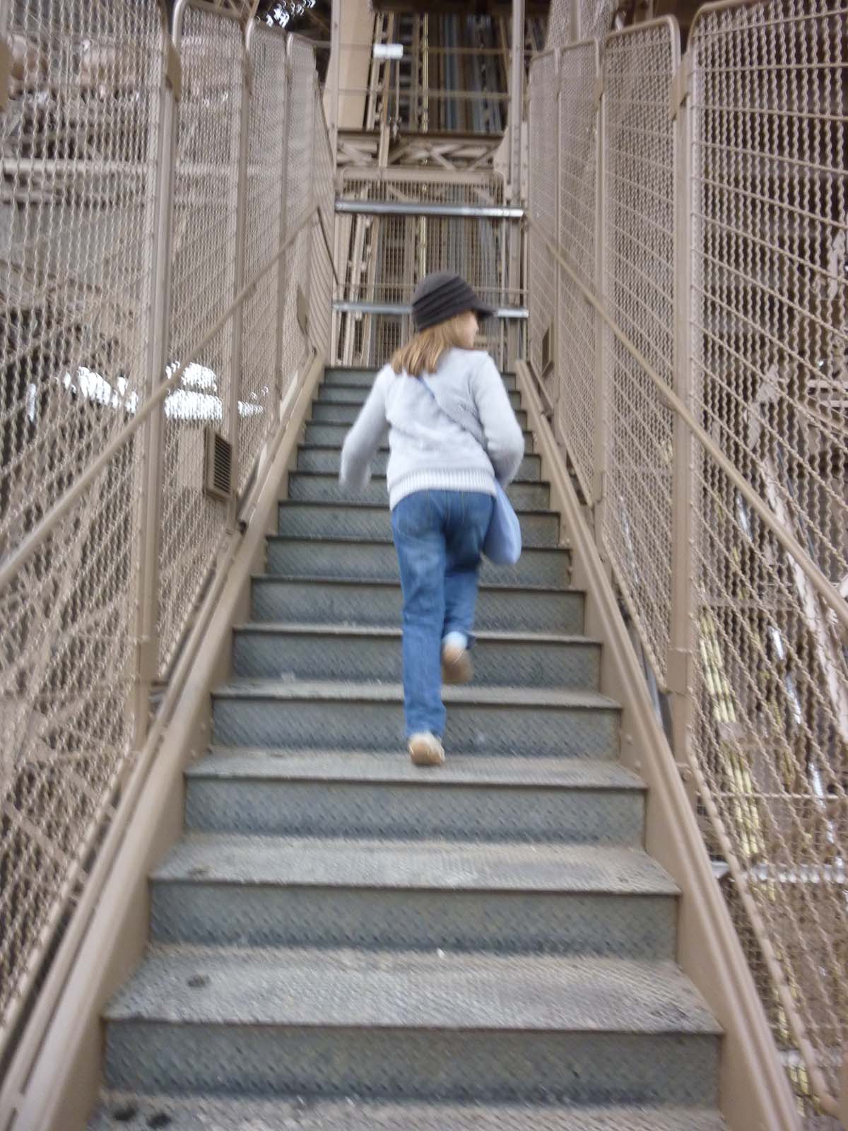 When we were at the bottom of the Eiffel Tower, we were joking that we could run to the top backwards, so that’s what we did to get to the bottom. We set the pace as a light jog and ever so carefully made our way backwards, stopping every 3 or 4 steps to look back. This became too slow, so we jogged faster forwards.