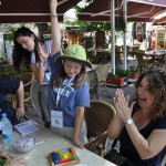My Mom figured it out, much to her delight, and we were given our first 4 missions. Our challenges were very straightforward and were easy to decode. After finding the answers to all of the missions, we wrote down the letters that were in bubbles and we had our final clue, the clue said, “Go to the Café Sibil.” We arrived at the café to find four people waiting at a table: the man who had been secretly photographing us the entire time, a woman, another man, and the man who had given us our first 4 missions. They were all smiling and welcomed us with cold drinks. They then told us that to get our next four challenges we would have to complete a game in 4 different ways. The game was, effectively, a wooden Tetris. Now, you might think that this would be easy, but the pieces all had to fit in a box around a blue square. Each time we completed the puzzle they would move the square to a different location and we would have to solve it again! They gave us a big version and a tiny version. My dad and I worked on the big one while, naturally, my sister took control of her board and began to ignore us all as she concentrated on the colorful wood.