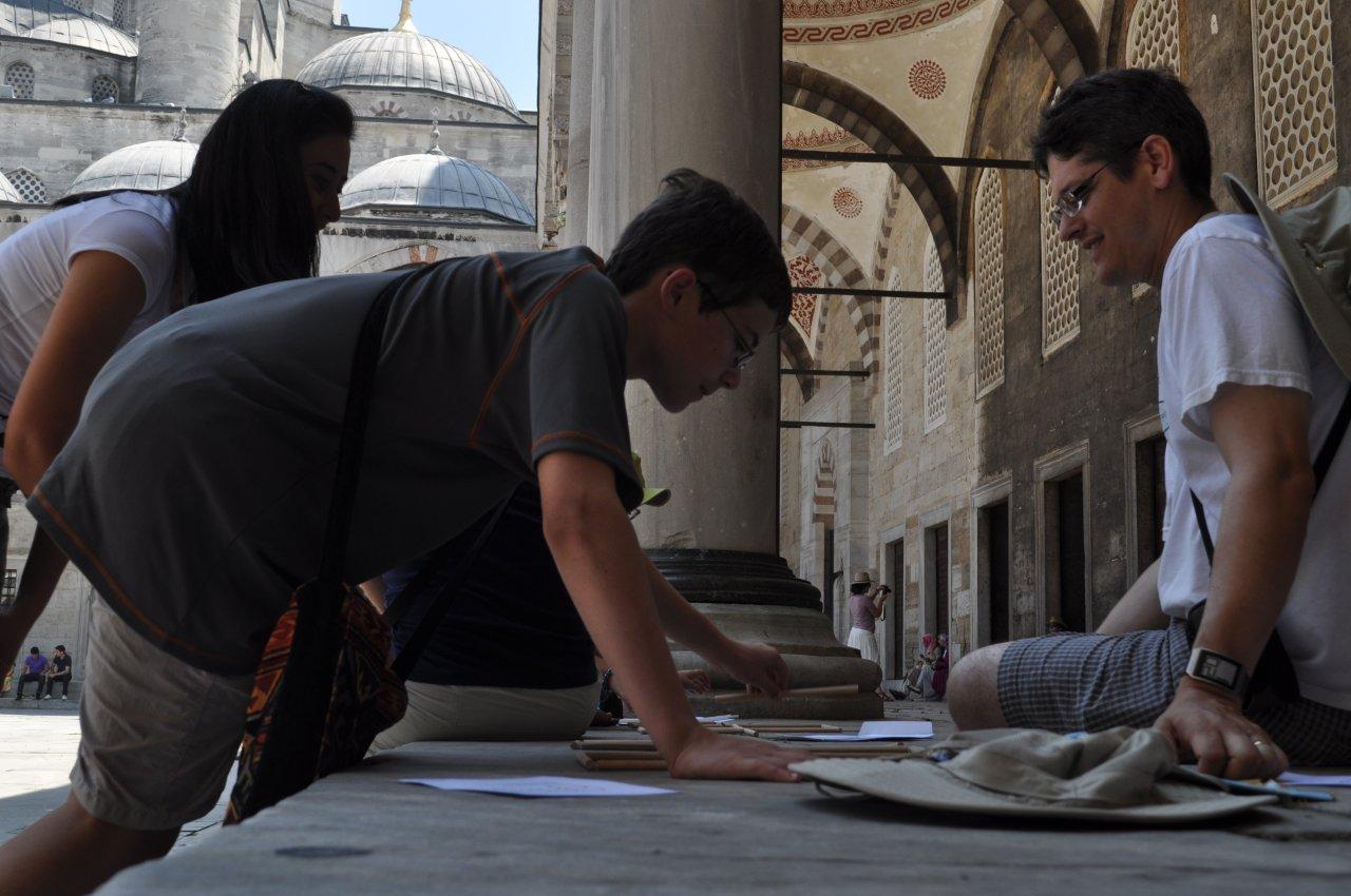 After a few minutes we had completed 4 variations and we began to solve the next 4 puzzles. This time, we stayed at the cafe and decoded all the questions before setting out to take our pictures of the locations (to prove we were there) and find the answers. After solving missions 5, 6, 7 and 8, we discovered our next meeting place, The Blue Mosque. There we were greeted by the woman whom we had met earlier and we were given the challenge that we would have to complete to get last four challenges. The challenge consisted of 3 parts; each part was a drawing of matchsticks in a certain position. The goal of each was to remove a number of matches to make a certain amount of squares. So that we didn’t scribble hopelessly on the paper, we used actual sticks. When we were done we solved our last 4 challenges. Amazingly, I knew most of the answers and we were able to figure out everything without leaving the spot.