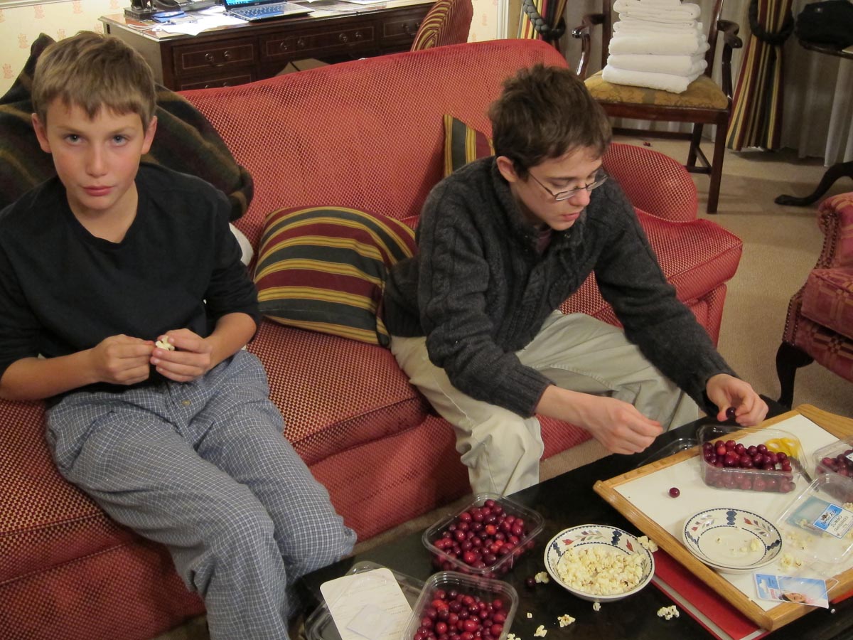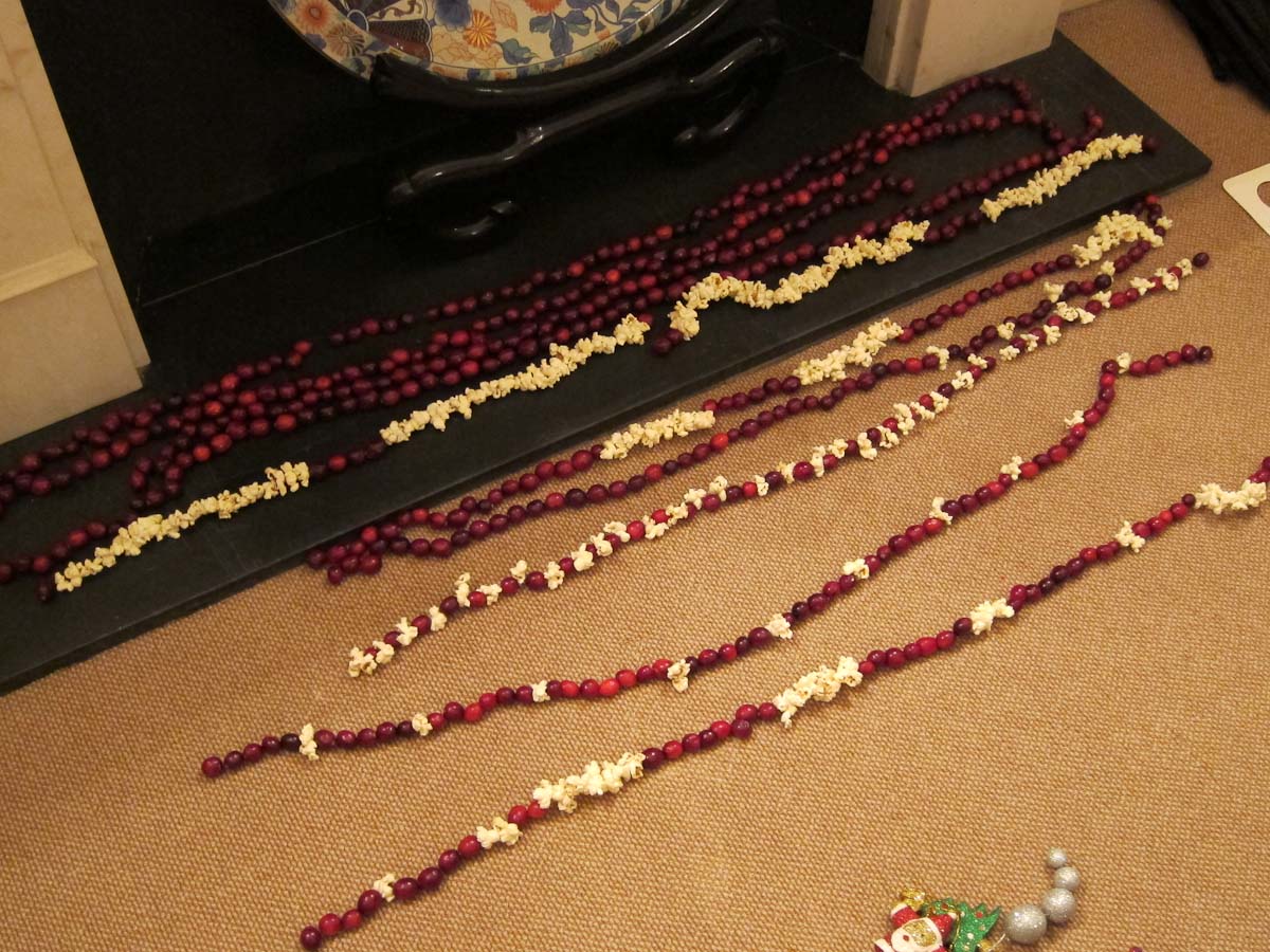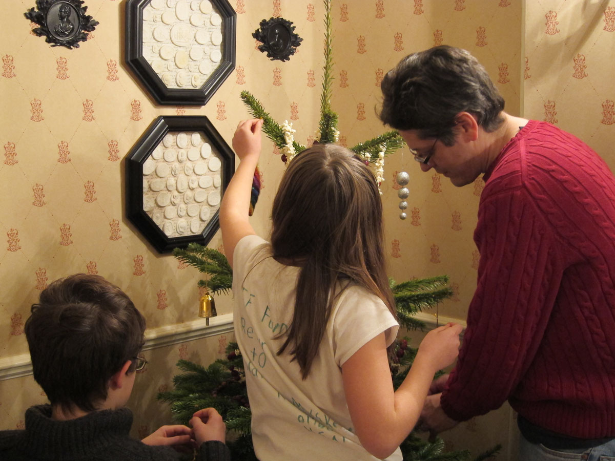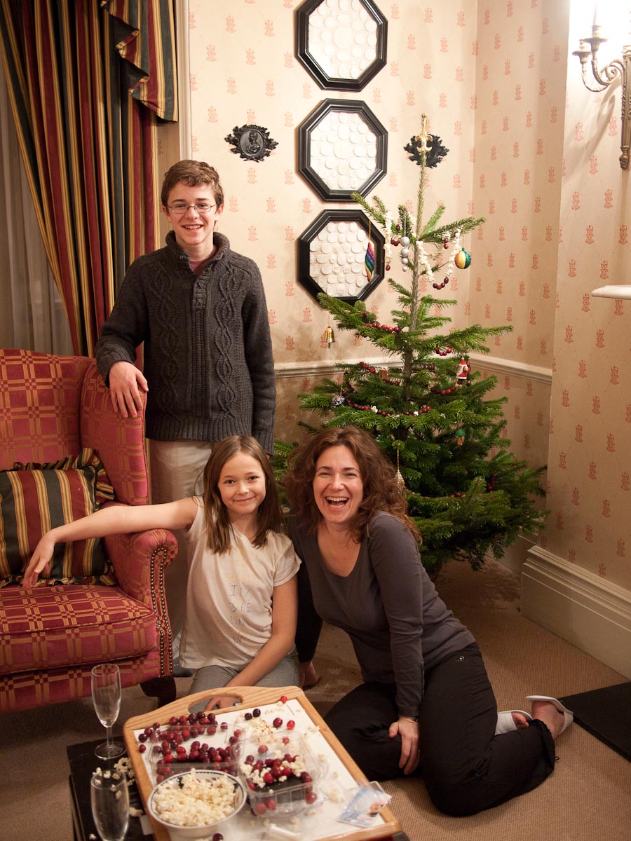 In addition to spending time with friends, we were also able to indulge in some of our favorite holiday traditions. The amazing team at the Athenaeum arranged for Christmas trees in our rooms (one for each family) along with several packages of microwave popcorn and fresh cranberries. On Christmas Eve, our nimble fingers were busy as we strung the red and white garlands. We hung the finished masterpieces on the trees along with the wooden ornaments we had bought in Strasbourg. Katherine decorated cookies for Santa which I had sadly over-baked but Santa didn’t seem to mind.