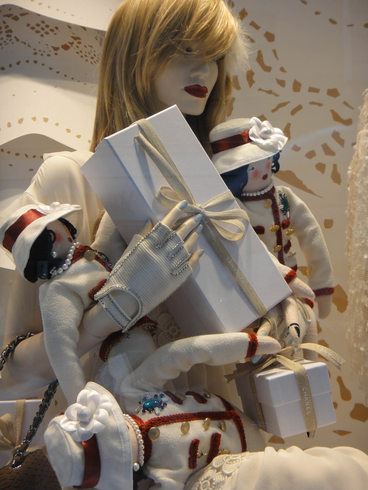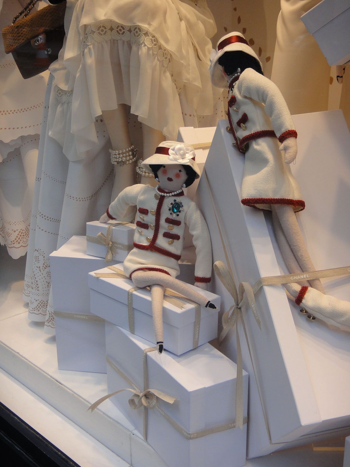 We had walked by the Chanel windows a hundred times. The boutique was right next door. Katherine and I often paused to admire the beautiful and occasionally outrageous outfits. Then one day in early December, we saw something which took our breath away: there amidst the winter white ensembles and holiday decorations were scores of miniature Coco Chanel dolls. Each one was dressed in a classic Chanel suit trimmed in red, complete with perfect gold buttons, a gemstone brooch, and a signature Coco hat. It was love at first sight.