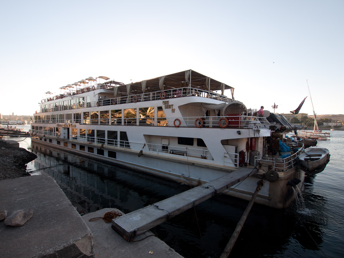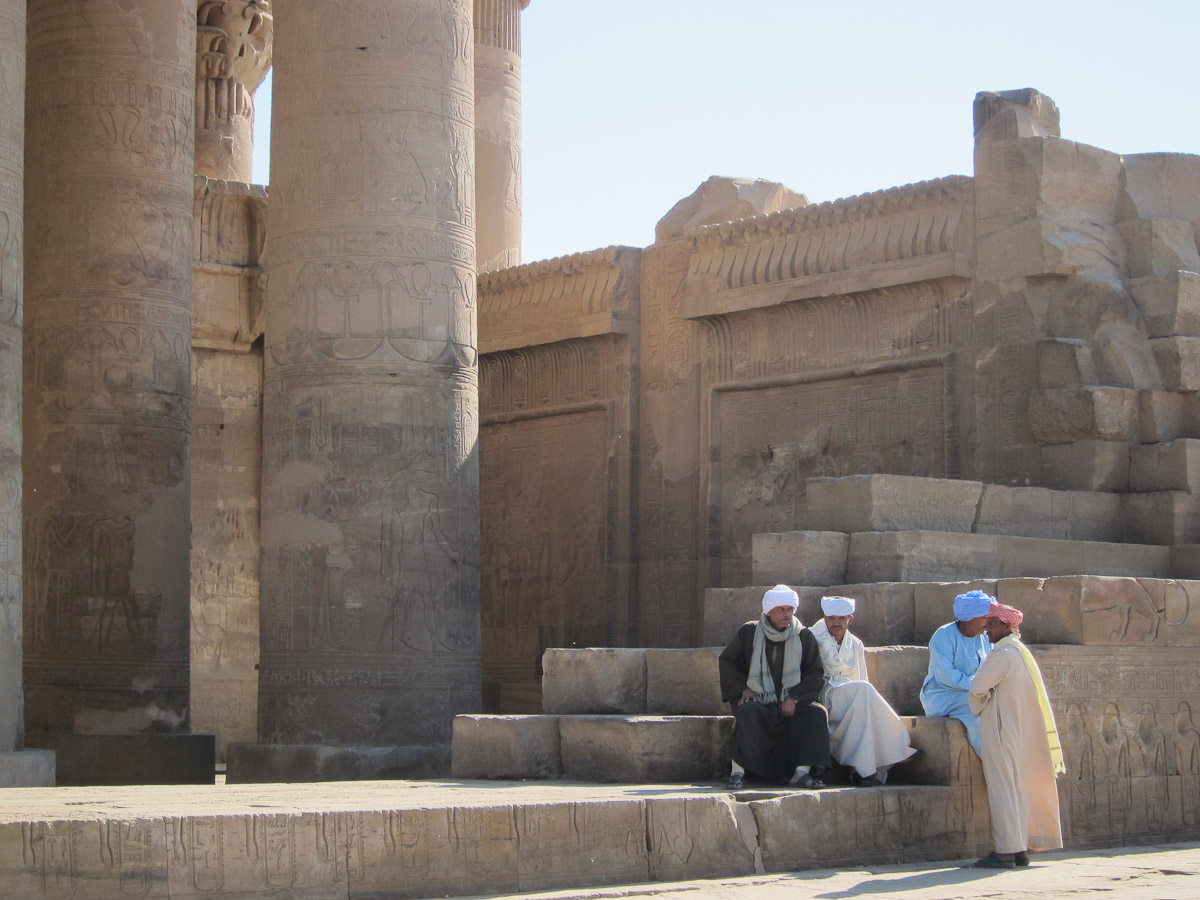 NOTE from Russ: we are including pictures from the first two days on the SunBoat IV, starting with an unfinished Obelisk in Aswan, the Temple of Philae in Aswan, which is dedicated to Isis and laid out on much the same floor plan, the temple at Kom Ombo which is one of the few to be dedicated to two gods at the same time - Horus and Sobek the Crocodile God. Apparently they decided to add Sobek later when the crocodiles ate more villagers than normal. We then arrive at Edfu at dusk.