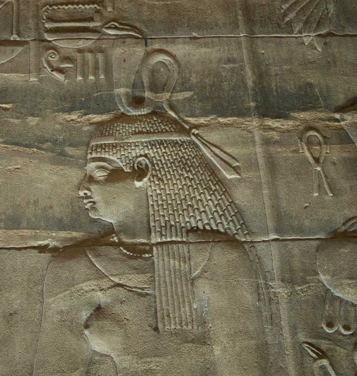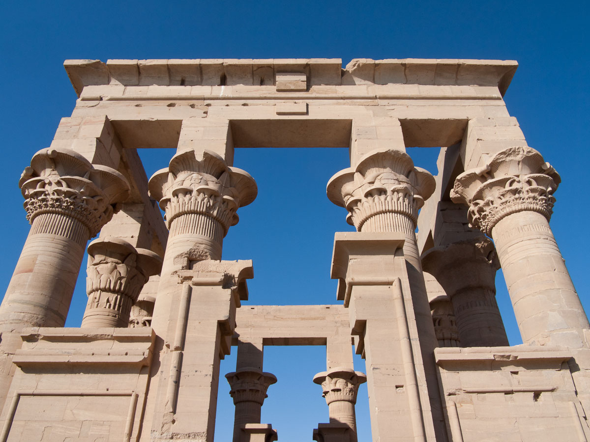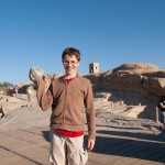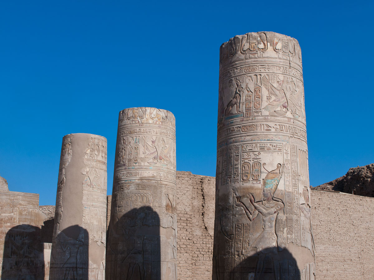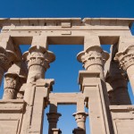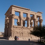 We entered the temple and found ourselves in a big courtyard. Columns lined the perimeter, their crowns alternating design between papyrus flower, lotus, and papyrus reeds. This indicated that the temple was made in the roman era. In fact it was built by King Ptolemy the 1st, one of Alexander’s generals. After Alexander died, King Ptolemy the 1st went to Egypt and began the line of the last pharaohs, including Cleopatra, who is actually descended from Macedonians. The Egyptians did not want to grant him eternal life by carving his name in a cartouche, so they left all the cartouches blank. Of course, Ptolemy didn’t realize it, because only the Egyptians had that tradition. Later though, he dressed like an Egyptian pharaoh, and after a while the Egyptians accepted him and went back and carved his name in a few cartouches.