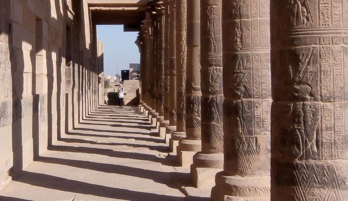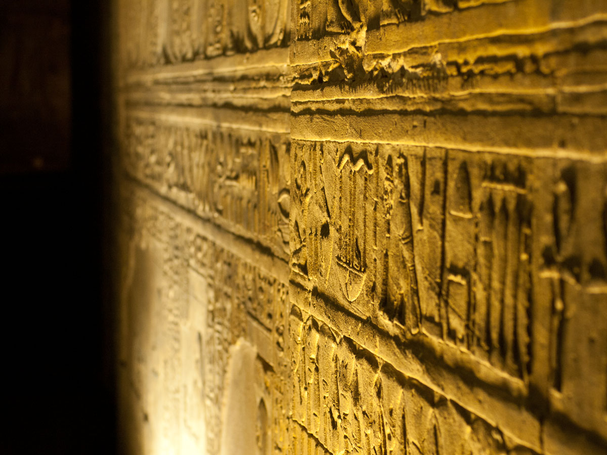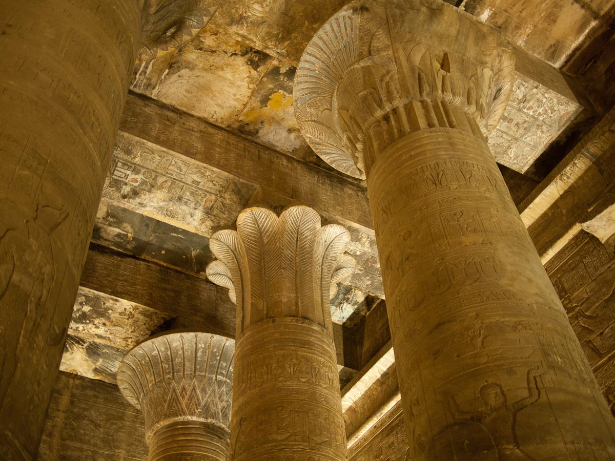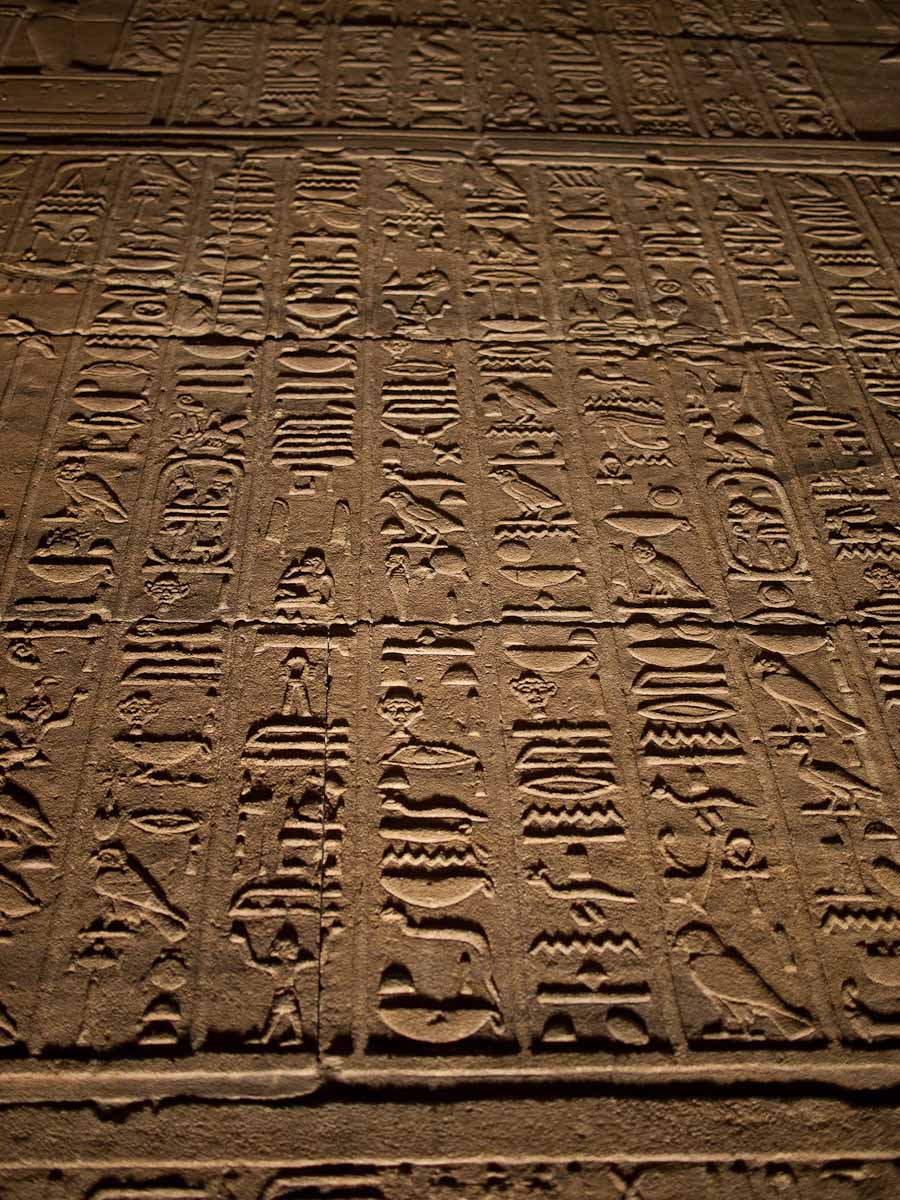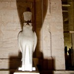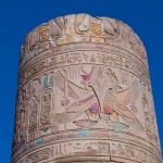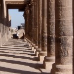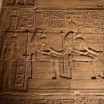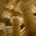 We proceeded in to a big room containing twelve columns and walls covered with hieroglyphics and stories from Egyptian mythology and history. Beyond that room was a hall with an additional twelve columns and walls as covered as the last chamber’s walls.