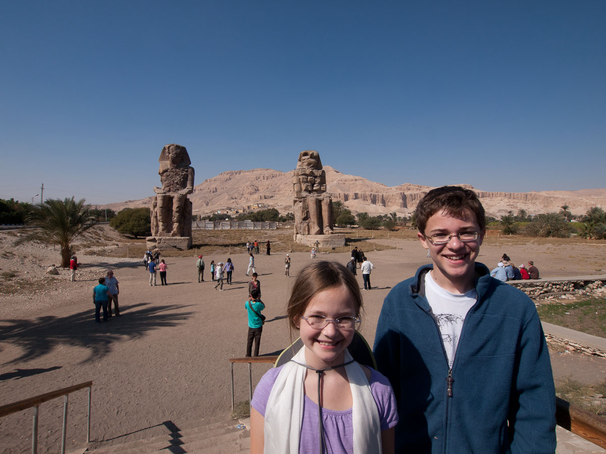 It turns out that Middle Kingdom tombs trump Old Kingdom pyramids any day. I just wish we had the pictures to prove it. [Russ: well... we did get one grainy no-flash cellphone picture of Gina in the spectacular tomb of Ramses V/IV.]