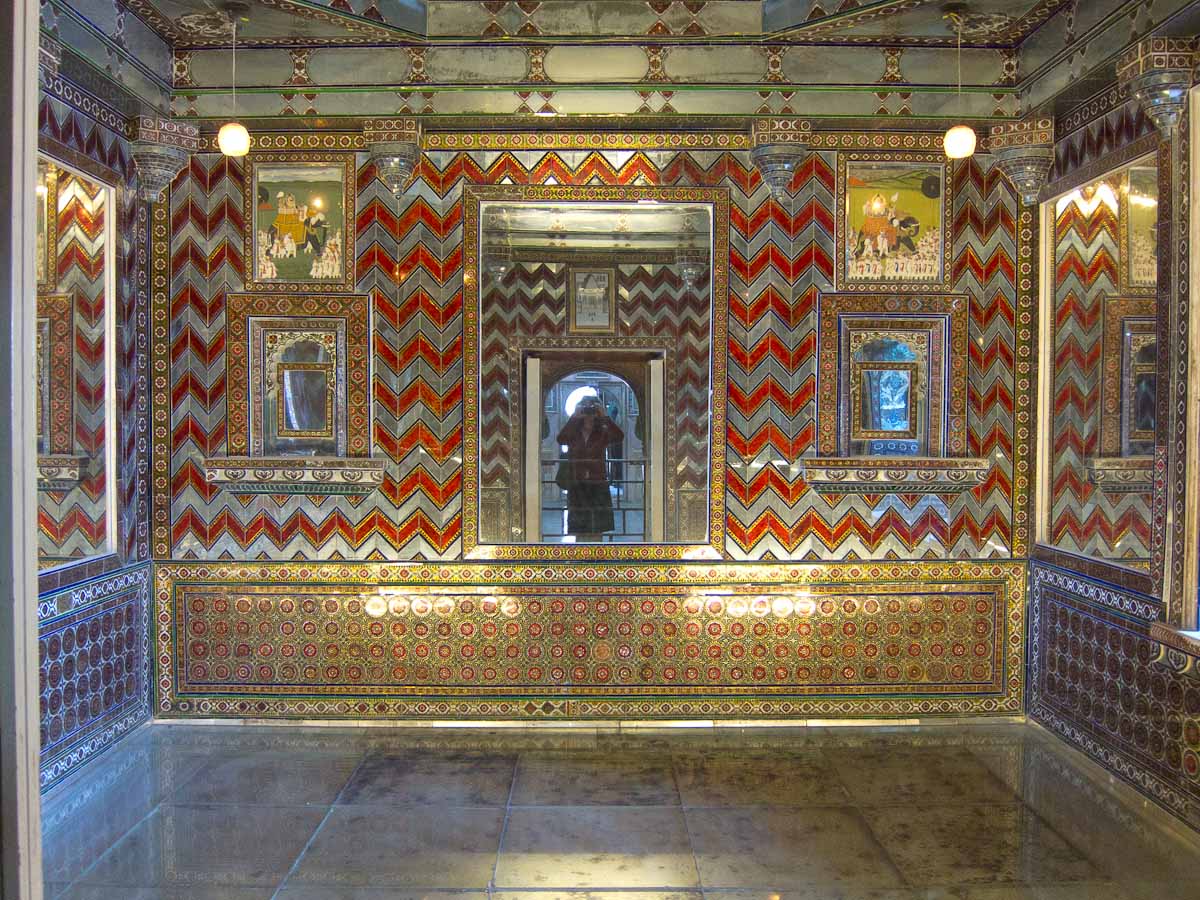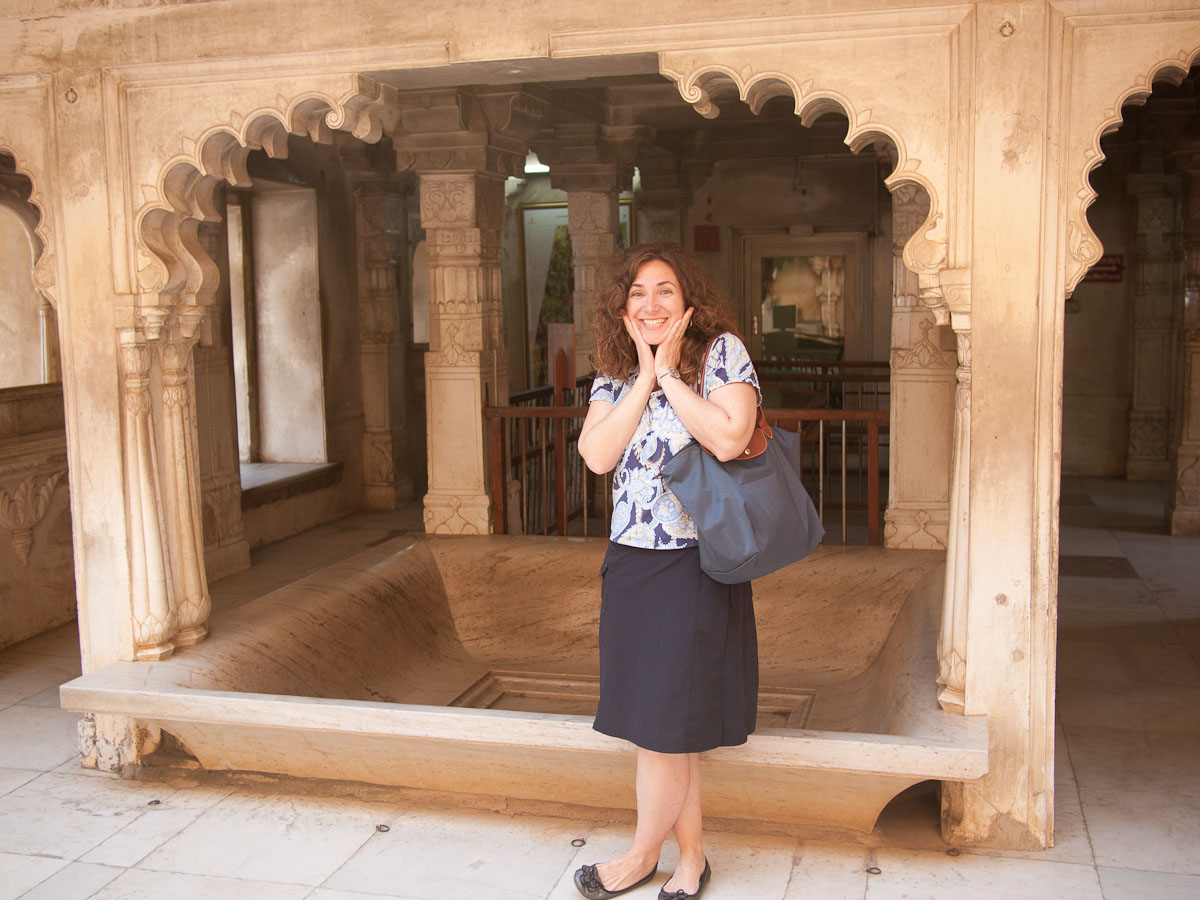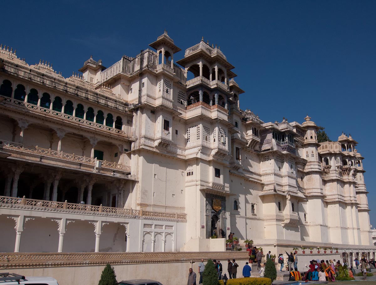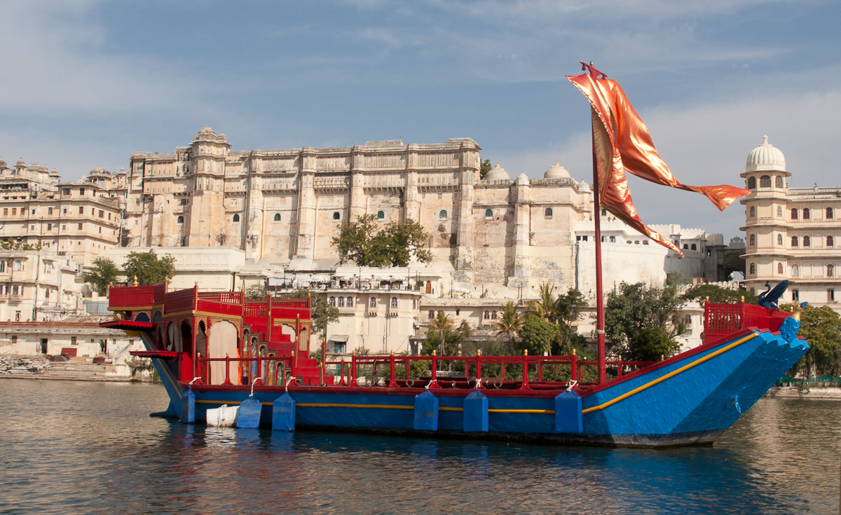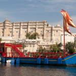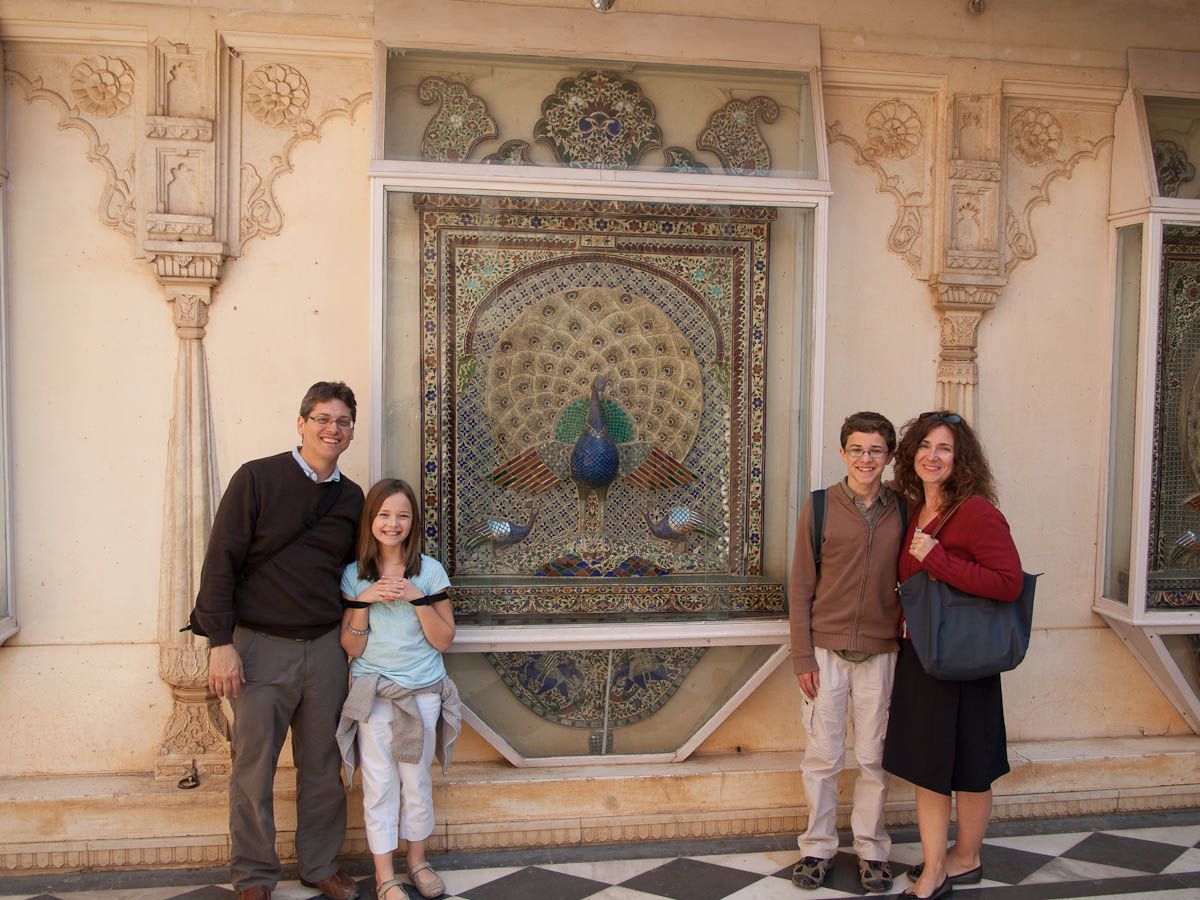 RUSS: In addition to the classic Golden Triangle of New Delhi, Agra and Jaipur, we added a fourth stop which was the Lake City of Udaipur. Here the royal Menwa family has ruled its kingdom unconquered, tracing its lineage back directly for 76 generations (!) to 500AD. Their prowess in battle and as hunters of dangerous animals is recognized with the title Maharana rather than Maharaja – which means they are warrior kings. The main tourist site in Udaipur is the City Palace, where we saw these inventions. After touring the palace, we visited a store for Indian musical instruments and we had a short class about Reiki, the mystical art of healing by laying on hands. We spent the last day at the superb Lake Palace hotel as Gina describes in her post.