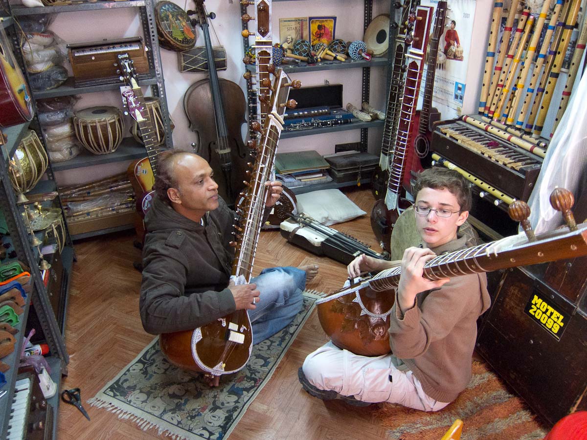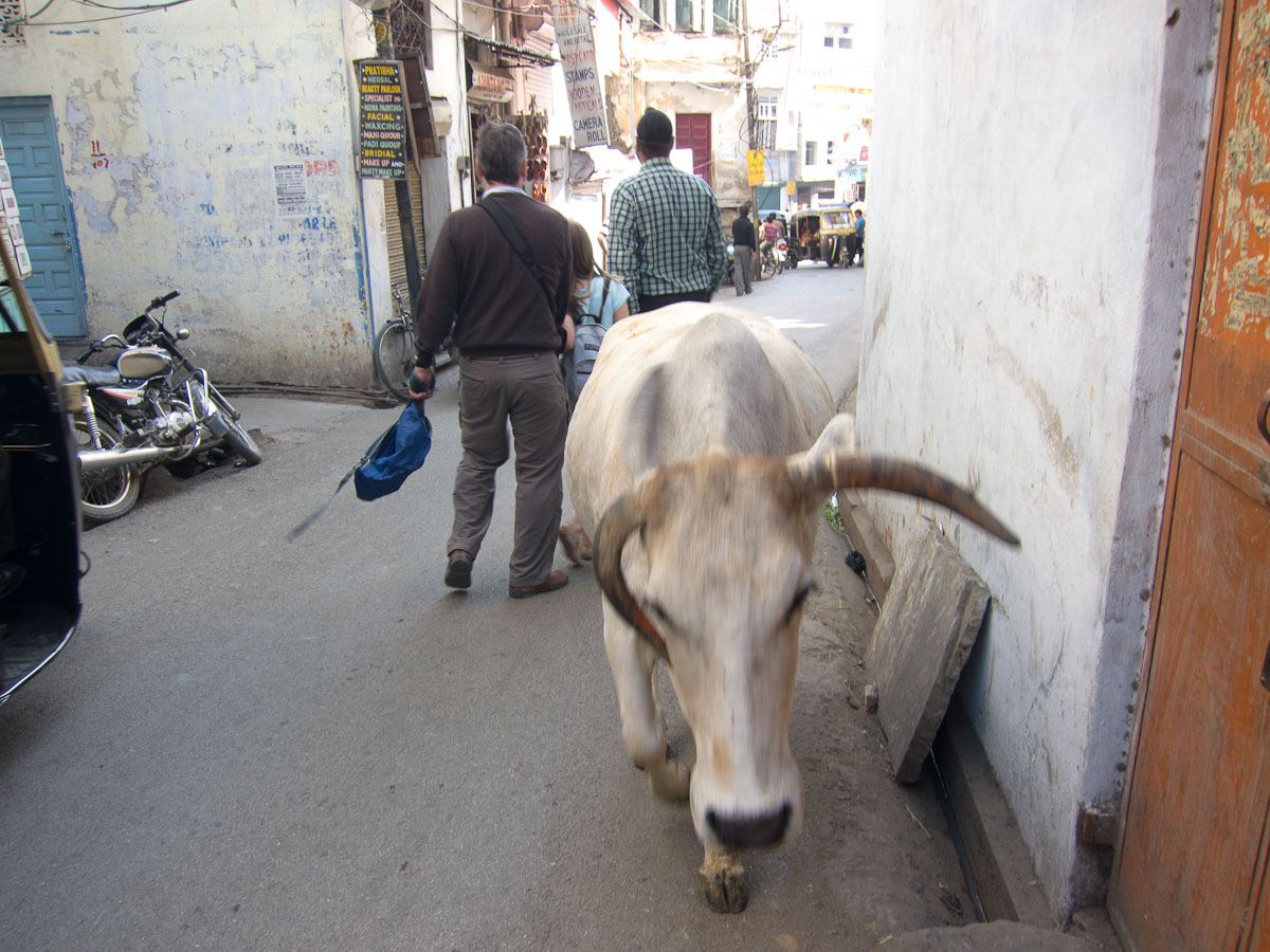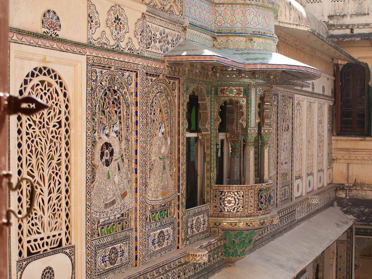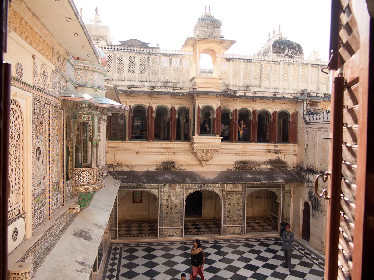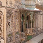 RUSS: In addition to the classic Golden Triangle of New Delhi, Agra and Jaipur, we added a fourth stop which was the Lake City of Udaipur. Here the royal Menwa family has ruled its kingdom unconquered, tracing its lineage back directly for 76 generations (!) to 500AD. Their prowess in battle and as hunters of dangerous animals is recognized with the title Maharana rather than Maharaja – which means they are warrior kings. The main tourist site in Udaipur is the City Palace, where we saw these inventions. After touring the palace, we visited a store for Indian musical instruments and we had a short class about Reiki, the mystical art of healing by laying on hands. We spent the last day at the superb Lake Palace hotel as Gina describes in her post.