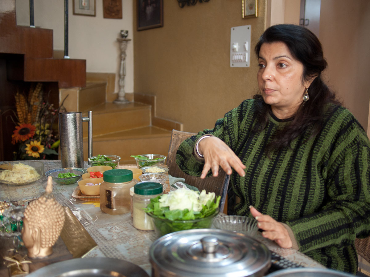 I did a lot of eating and a bit of cooking while here and my first introduction to both came under the expert guidance of Jyoti Agarwal, a professional cooking instructor in Delhi with whom we spent a day. Jyoti has been teaching gourmet home cooking for more than a decade. If you love food and find yourself in Delhi, I recommend you make a point of visiting