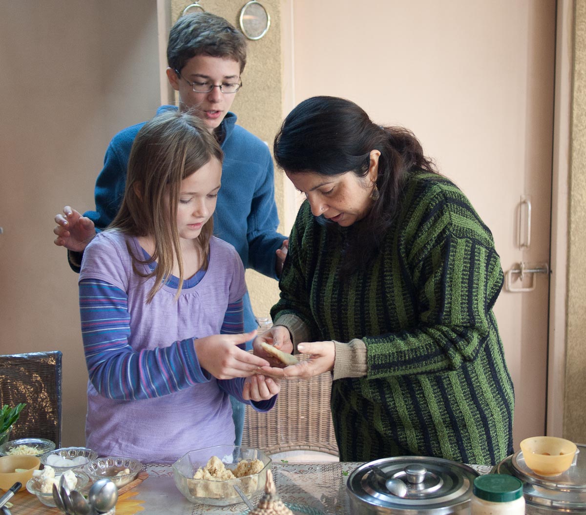 My next lesson came a week later in Udaipur at the able hands of Rakshita Shaktawat in her home kitchen. For us, this proved to be more than a cooking lesson but a glimpse into family life and we were deeply grateful for the opportunity and the hospitality we were shown. Rakshita and her husband Dakshu, along with their adorable 7-year-old son welcomed us in the early evening and graciously waved us off 6 ½ hours later!