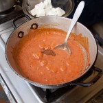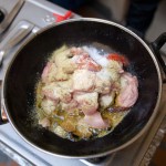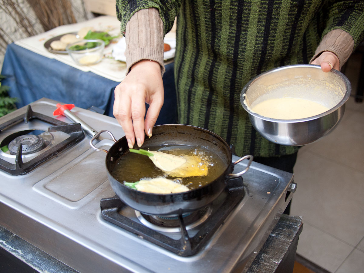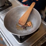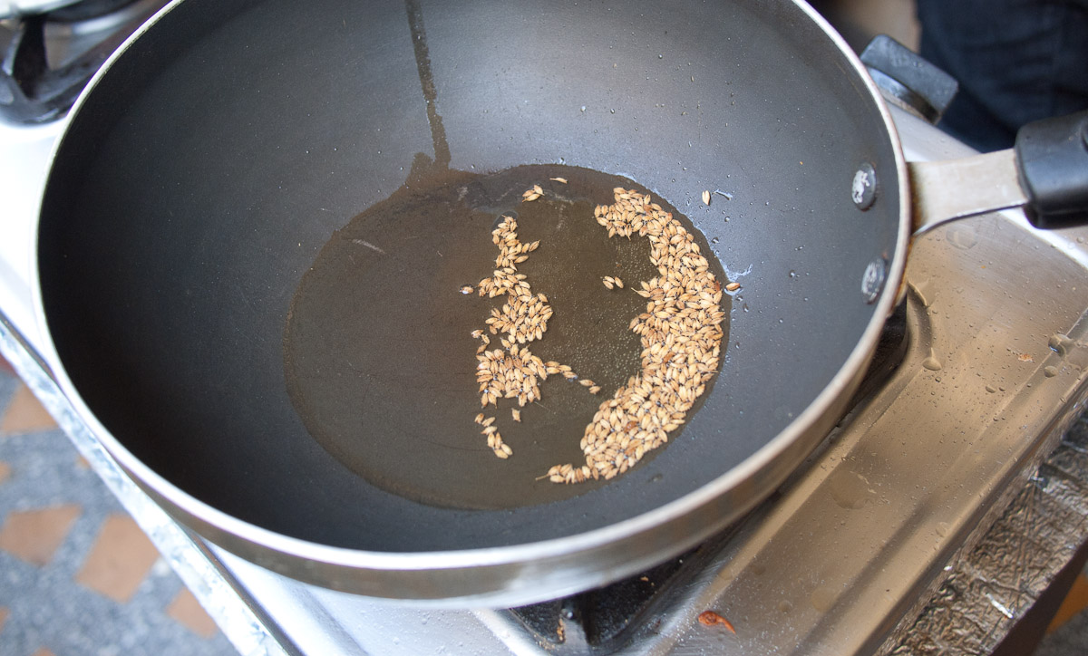 Meanwhile, inside Rakshita showed us how to trim and open okra pods which we then individually stuffed with a spice paste made of pureed garlic, onion, turmeric, chili, cumin, and salt. The okra was then sautéed in mustard oil until cooked through. The aroma was incredible and I made a mental note to cook this for my father-in-law. Our second vegetable dish was a reprise of cauliflower (one of Russ’s favorite veggies). It was also sautéed only this time it was seasoned with tiny black mustard seeds.