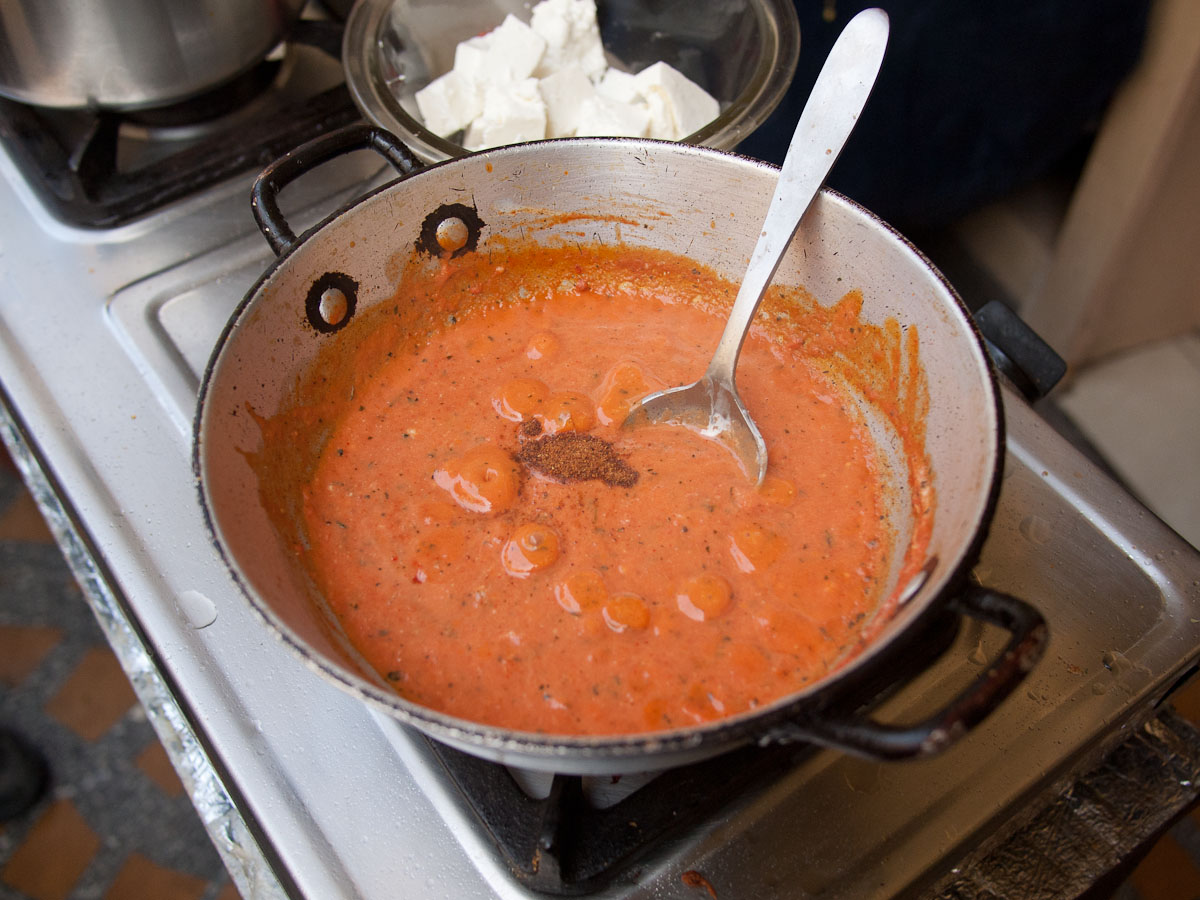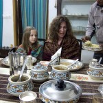 We also loved the stories about the wedding games. She told us of one where a ring is dropped into a large vat-like bowl of perfumed water thick with floating petals. The bride and groom must each feel about for the ring, the first one to find it wins and keeps it. The trick: the groom may only use one hand. And another game where seven silver trays are laid out in a path. The groom enters first and taps each tray with the tip of his sword; the bride then follows and must collect and stack each tray without making a sound. If the bride makes noise, it means that she will be quarrelsome. Our eyes grew wide when we saw the trays—they were huge! It was an impossible task! We asked, does anyone ever do that successfully? Of course not, she replied with a knowing smile. On that note, we all went to the dining room and enjoyed our feast.
