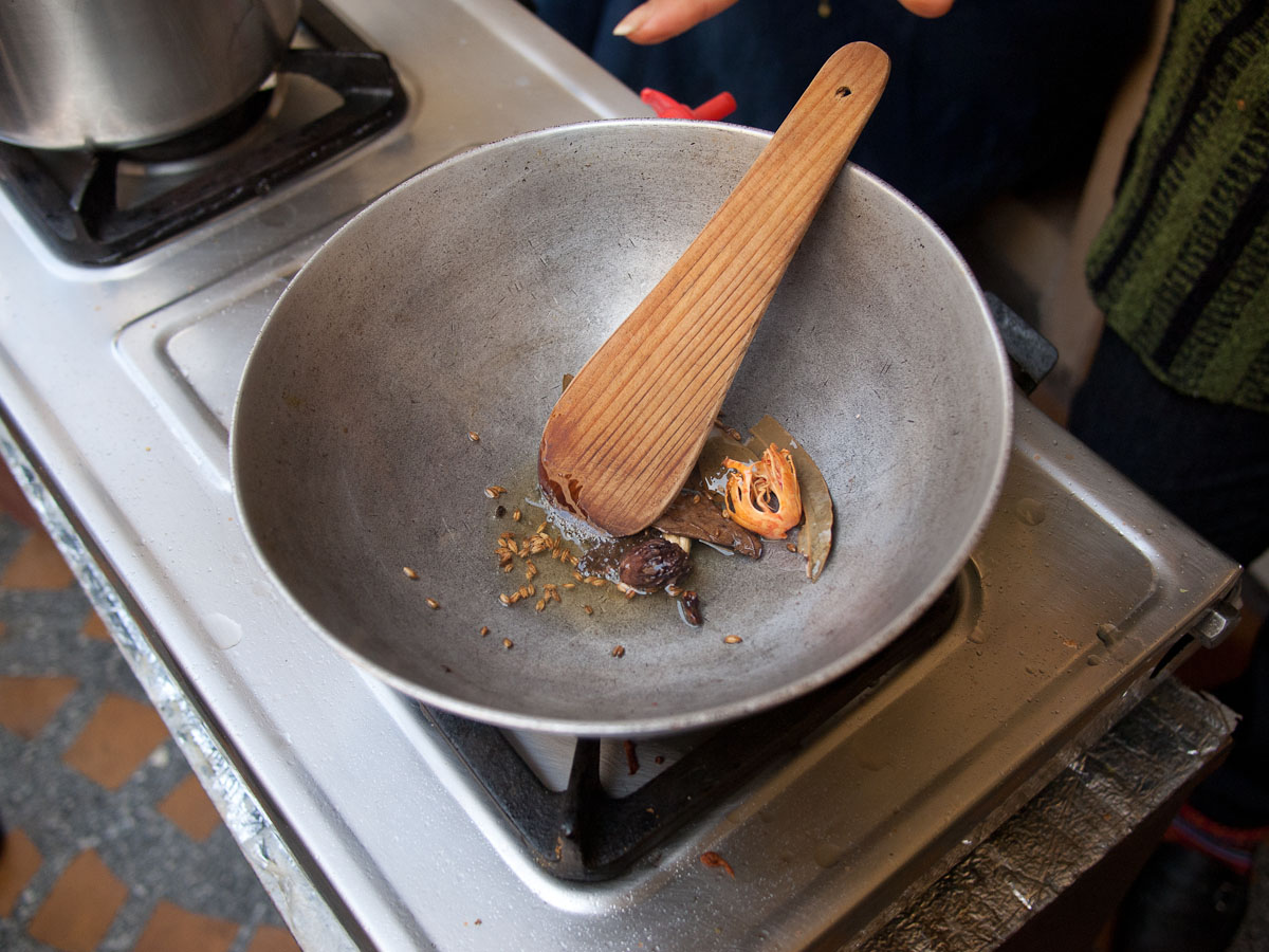 always local, recipes are handed down within families, and what you eat unfailingly changes with the calendar. Indian cuisine is also, I learned, entirely homemade; everything is from scratch—including the spices. Cooking is taught by your mother and it is serious business. Young girls are rigorously trained in preparation for marriage as every wife is expected to be a highly skilled cook. Dishes are practiced and methods and recipes are memorized; there are no note cards. Once everything is committed to heart, a new wife must then re-learn how to cook every dish with her mother-in-law as teacher. When a girl marries, she goes to live with her husband and his family. Each preparation must then be modified to suit the groom’s culinary heritage and precise region. You only need travel 50 kilometers to be eating differently.
