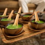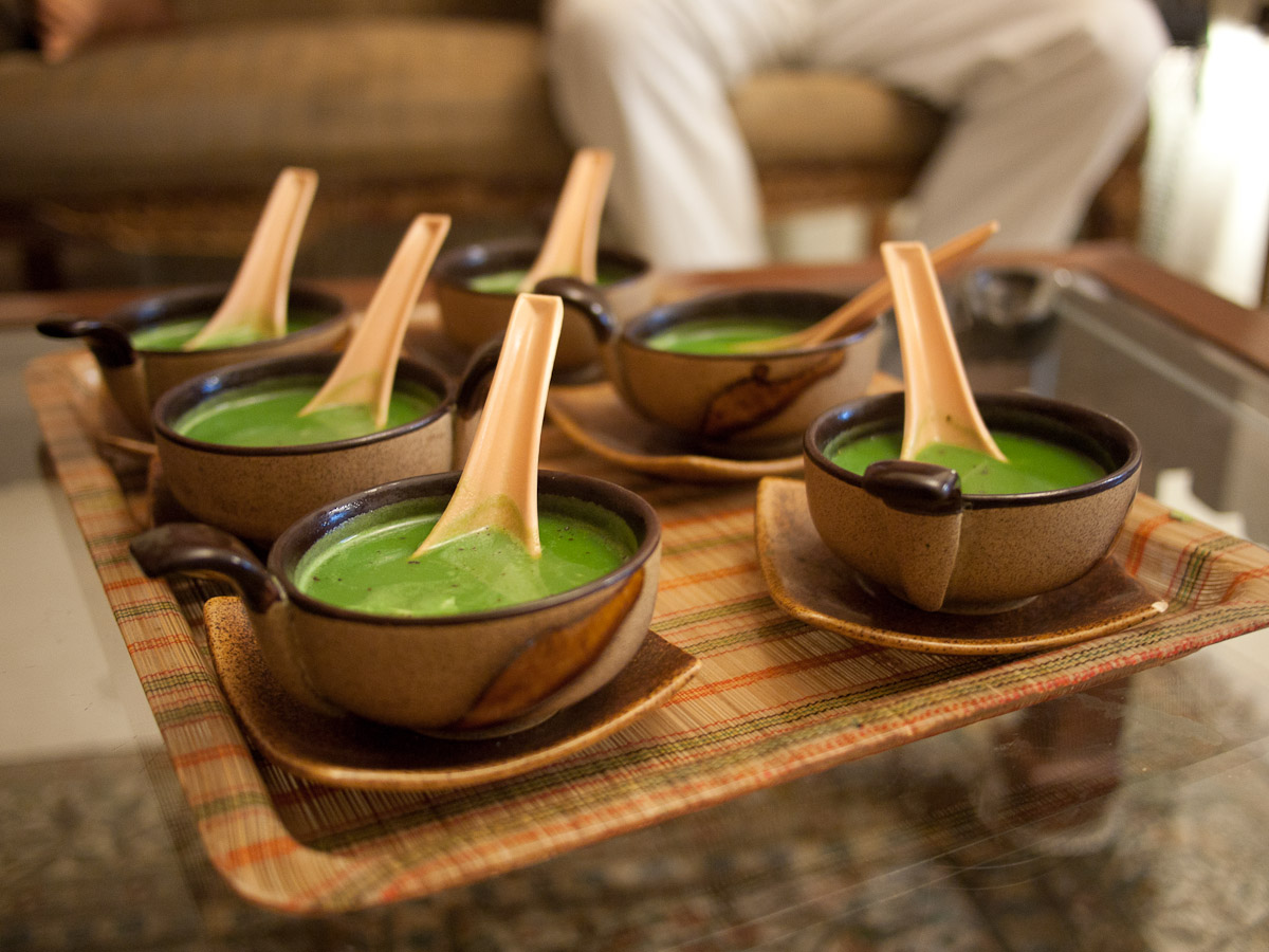 tikki, shredded potato balls stuffed with fresh peas and also fried. The last two treats were served with a green chutney made by pureeing a ton of fresh coriander and mint with garlic, red chili, lime, and salt.
