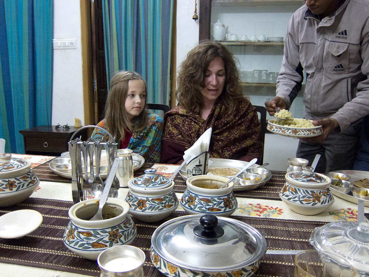 Once back at home, Rakshita, Katherine, and I got to work while the boys went out to the yard. As I peeked out the kitchen window I saw that a cricket lesson was underway and Carter was having the time of his life. Manjeet, our guide, had played on India’s World Cup winning team in 1993 so the quality of the instruction was pretty good! Nevertheless, I kept stealing cautious glances outside as Dakshu had told us a leopard had made off with his Doberman shortly after they moved in several years ago. I figured there was strength in numbers and the dads were outside armed with a cricket bat, so all would be well.