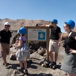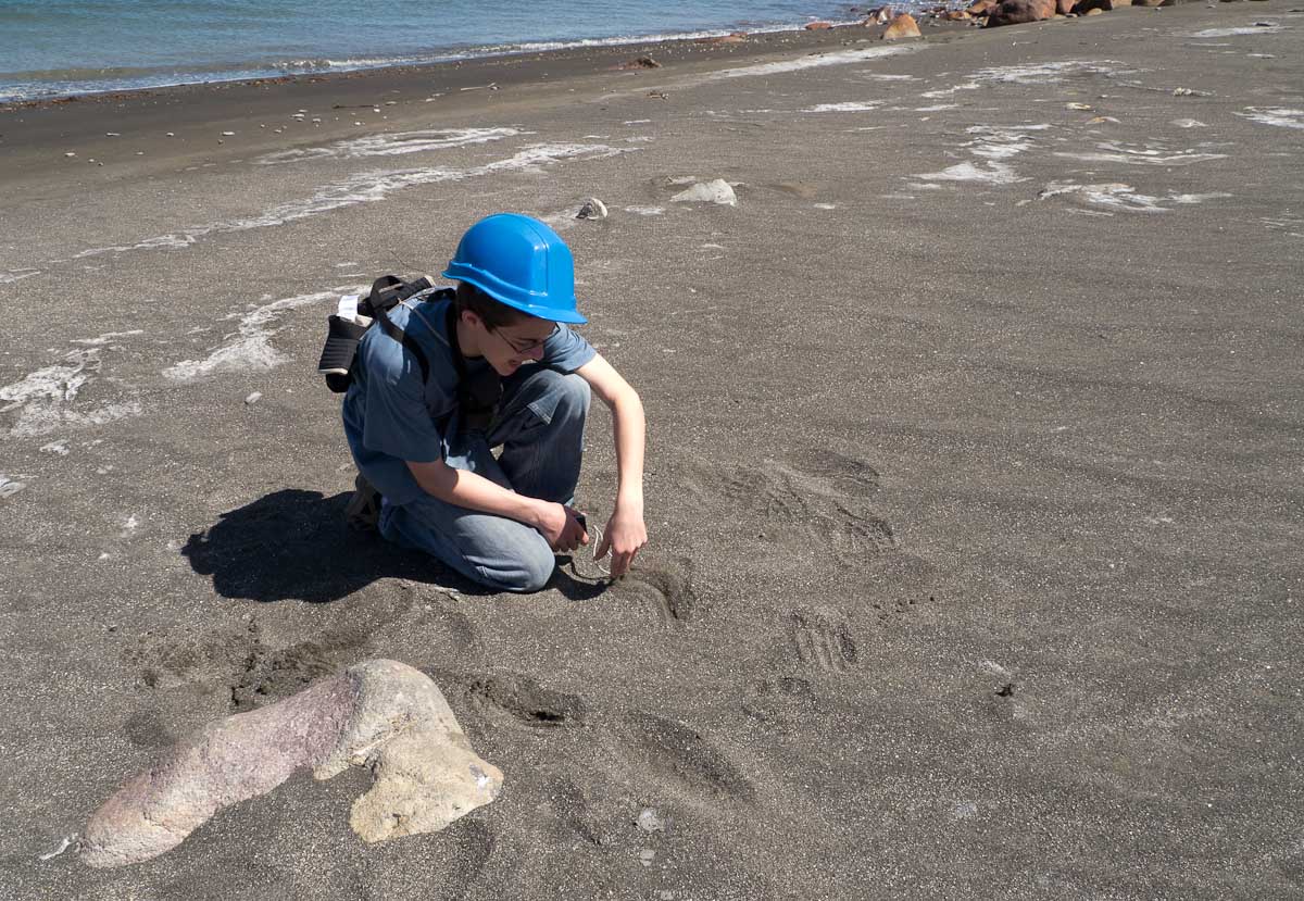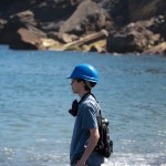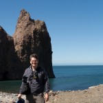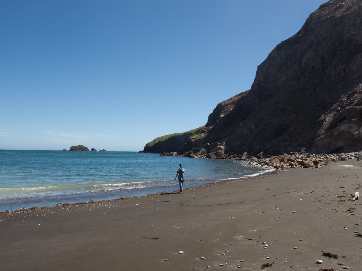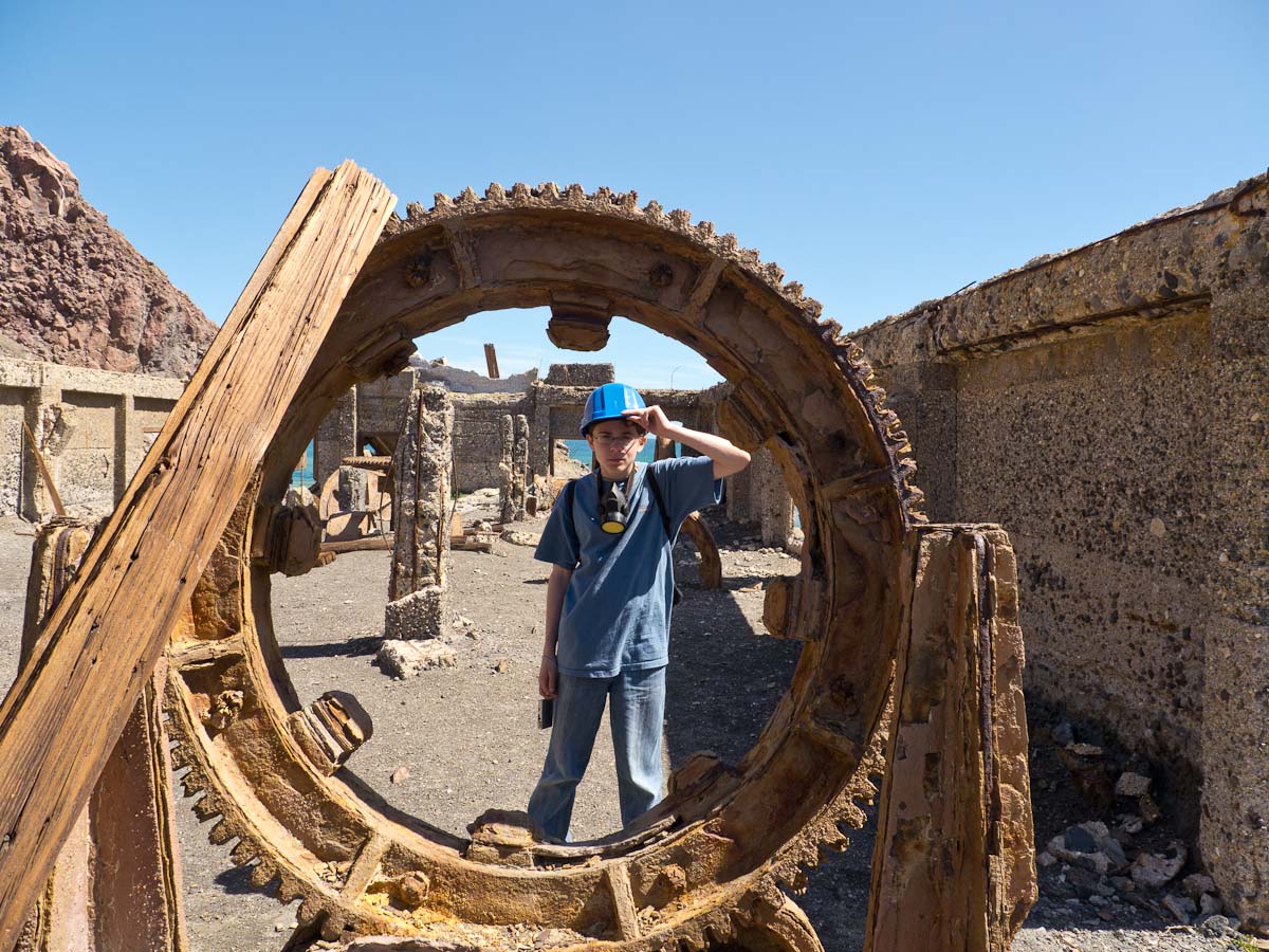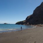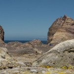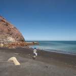 We stopped for a bit at the Island’s beach. The deep, rich blue of the water was shocking after spending three hours looking at green, yellow, and rusty red rock. As we explored the beach, Giles noticed that the deeper you put your fingers in the sand the hotter it became. In fact, earlier on our trip, Colin had unearthed a stone and the underside had burned his fingers! A difference of a few centimeters was all it took to go from warm to burning. That is how close the magma and super-heated gas was to the surface.