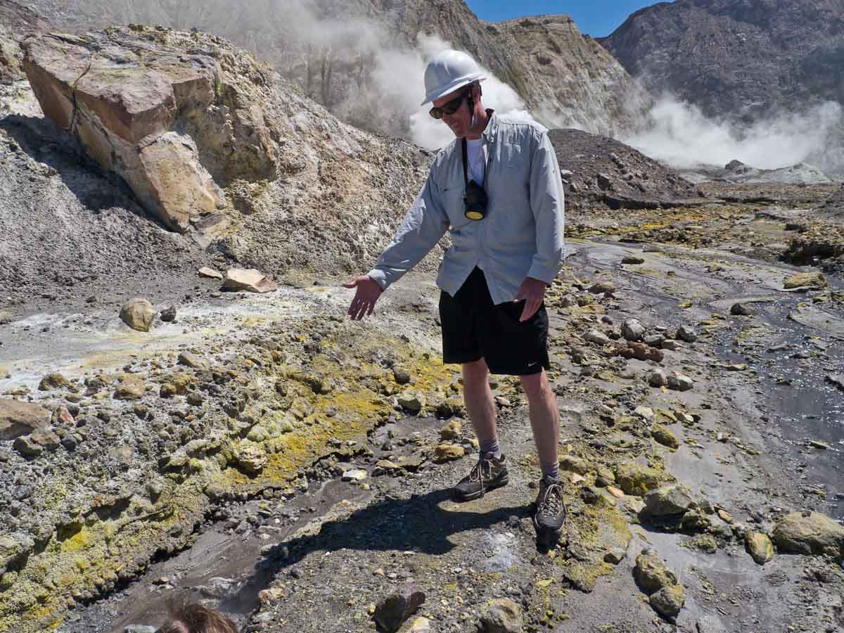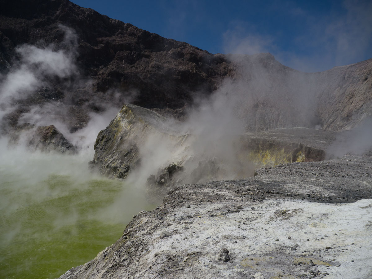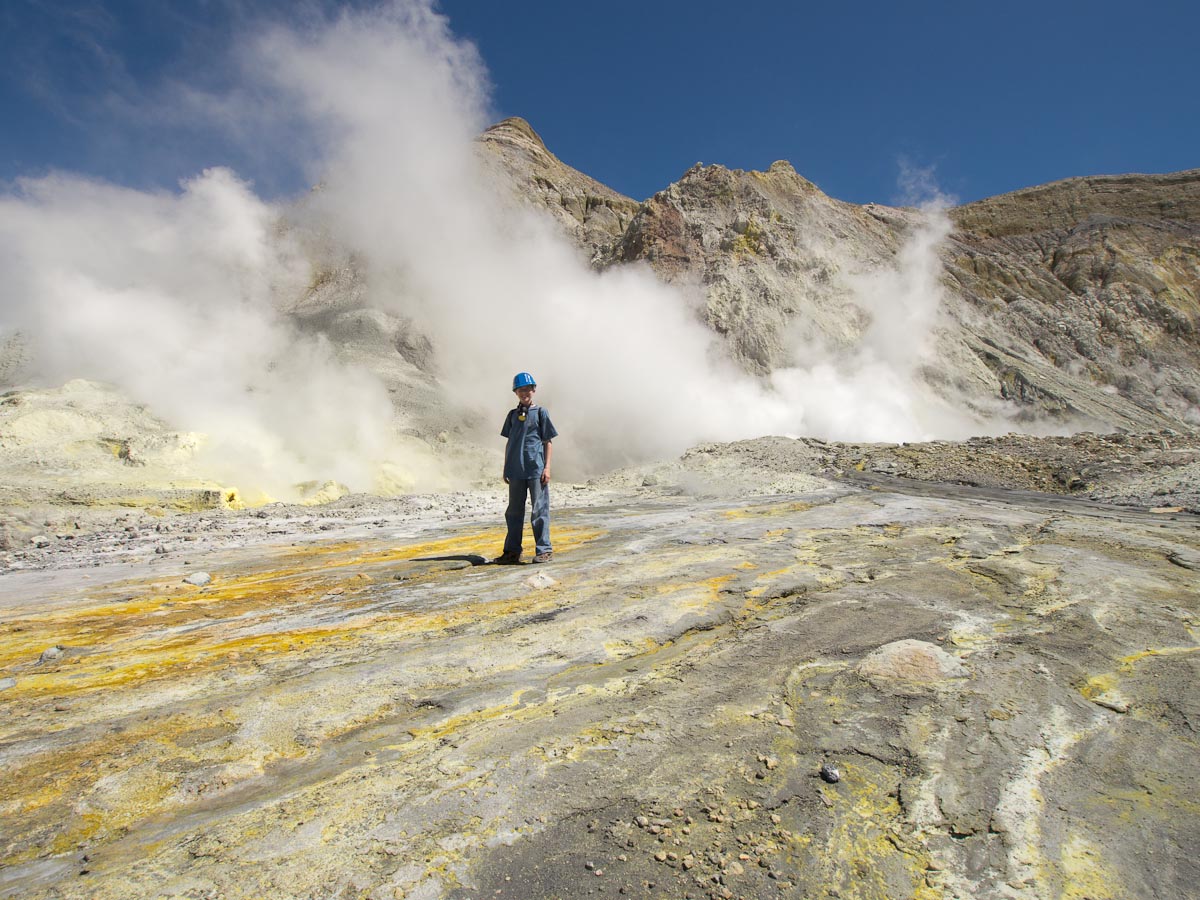 In addition to the major gas vents, there were hundreds of smaller ones scattered about the volcano. I couldn’t believe it. When I was in Natick, I thought volcanoes were tall sloped columns that spewed ash and magma; it turns out that there are many different types of volcanoes, White Island a foremost example.