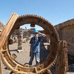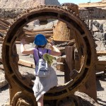 On our way back to the helicopters we saw the ruins of a refinery. It was rusted and crumbled. Some of the last people to mine this place were killed in the night by a massive debris, water from the pool, and mud slide. Our pilot pointed out the cable that they used to lower themselves in to the crater. As we walked, our Pilot told us about herself. It turned out that she had also traveled all over the world, (which in retrospect makes sense; she is a pilot after all. However she had been traveling with friends and not in helicopters, so I suppose being a pilot is irrelevant.). When we told her about Piggy, she replied that she had done the same thing only a bit different. She and some friends had stolen their neighbor’s garden gnome and brought it all over the city, taking pictures as they went. In a bar on a bridge, in a park, beside a pool, on a bus, you name it this gnome has been there.