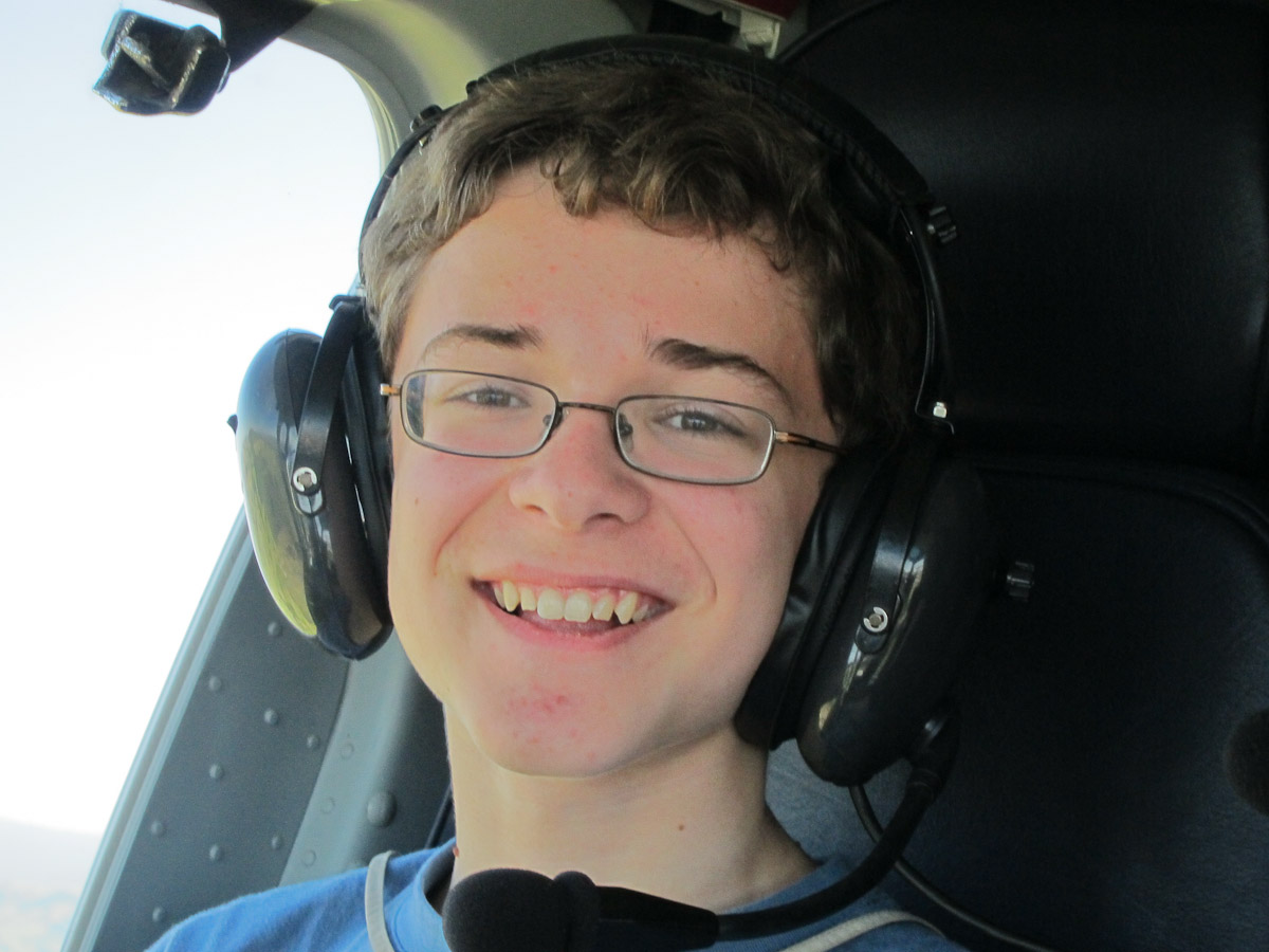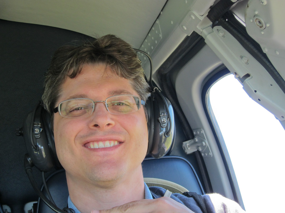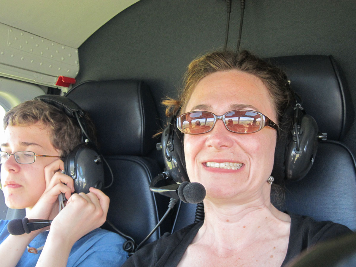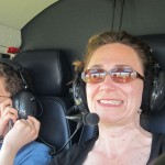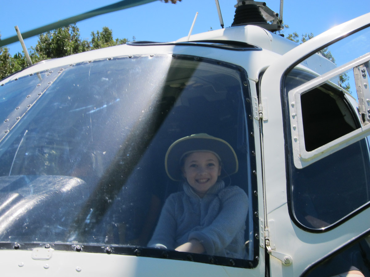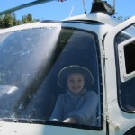 As we flew away, I got to sit in the co-pilot’s seat! There were additional windows in the bottom front corners of the floor. These were so the pilot could see if there was anyone underneath him or her. I took off my headset from its hook on the ceiling and spoke in to it. Someone in my family responded and now that I knew my microphone worked, I was ready for lift-off.