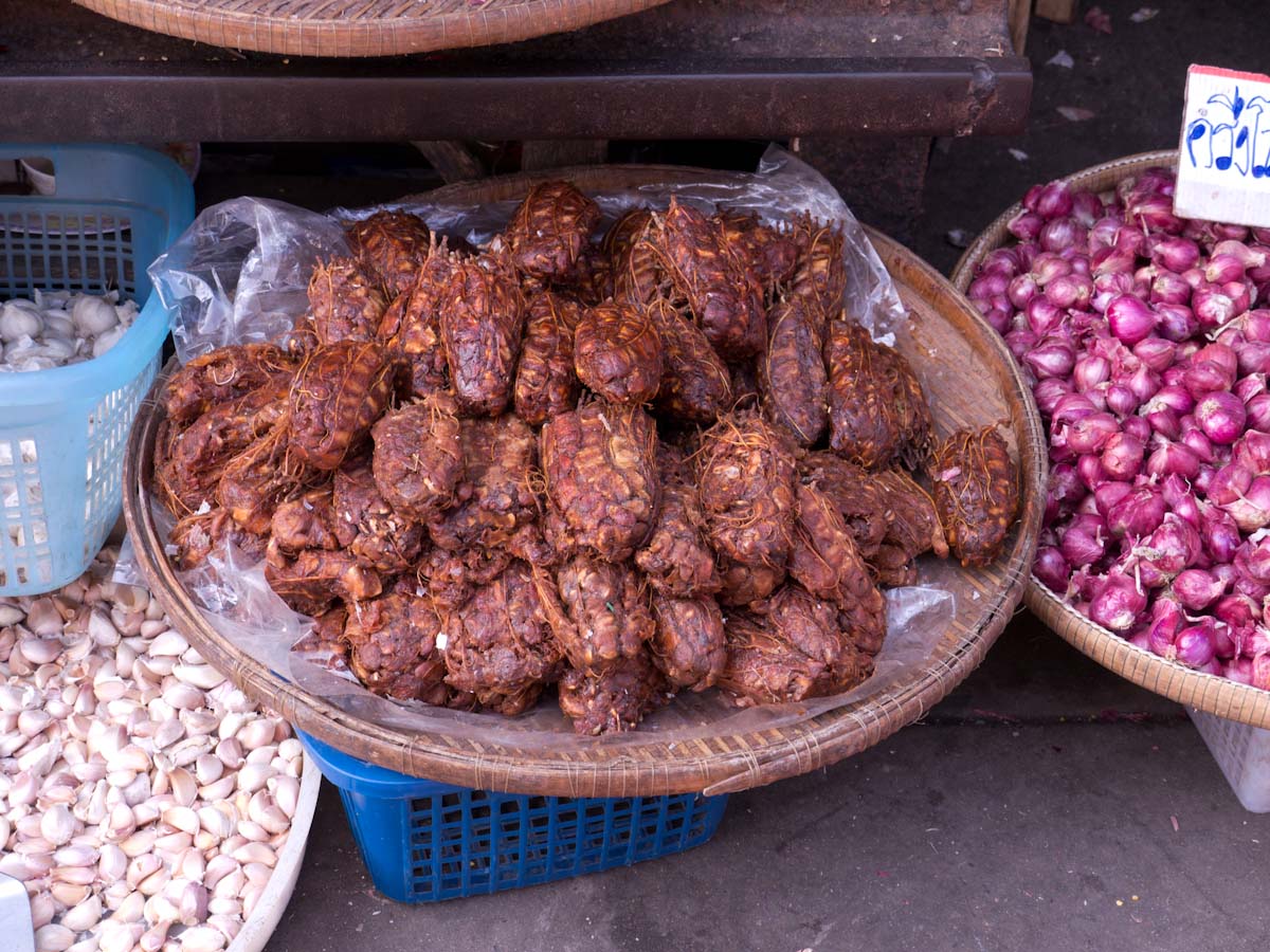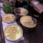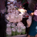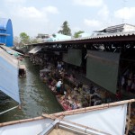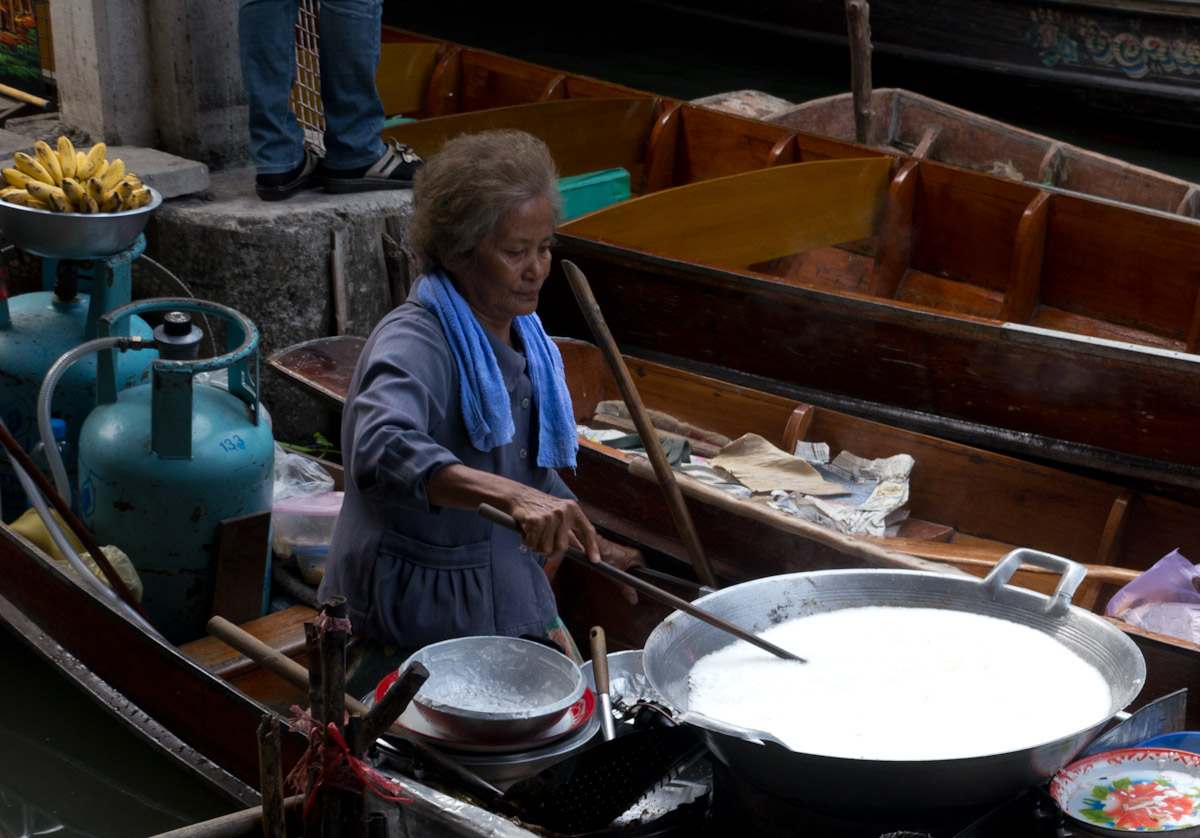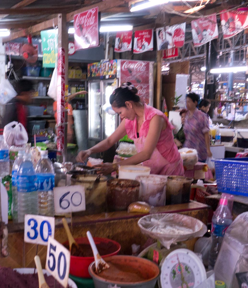 As we entered the heart of the market, the stores were all on concrete and situated at about our head level; the trinket boats were replaced by anchored food vendors. We disembarked and shopped around the market. Here, I had my first real haggling experience ……I loved every bit of it, but the shopkeepers definitely did not. I was consistently bringing the prices down to one fourth or LESS of the original price. Suzy said I was better than her, but I don’t believe it.