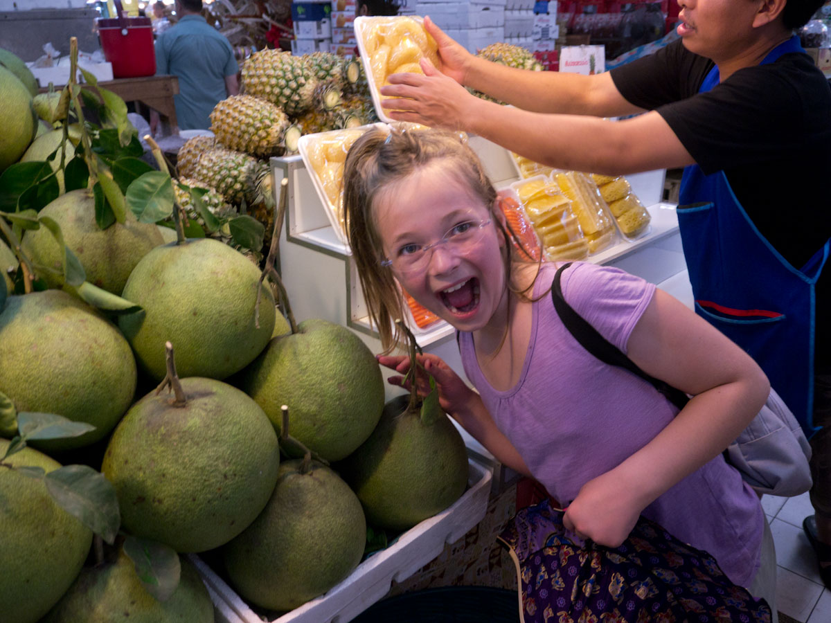 Continuing our market adventure, we snacked on sticky rice with mango, dim sum, and some fruit.