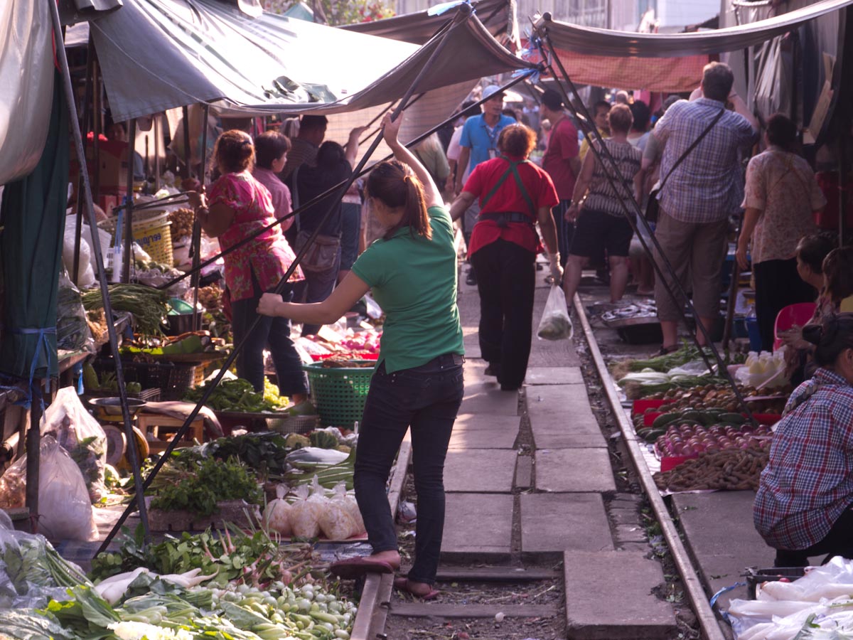 NOTE: we visited several markets in Bangkok as shown in the pictures. The first was the Weekend Market, then the Train Market where the vendors line the train tracks- and must fold up their stalls every time a train comes by! The last was the Floating Market which you must visit by boat.