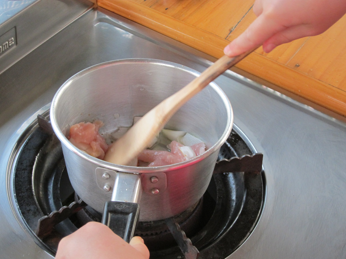 The chef set them up on their own little ovens; each had a pot and spoon. He drizzled soy bean oil in the pots and put their pastes in them. He turned the oven on and said “Don’t let it burn. If it does, then you get no dinner.” They franticly tried to save their food from the clutches of the black crispy one, and were successful.