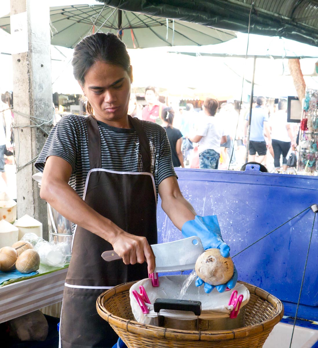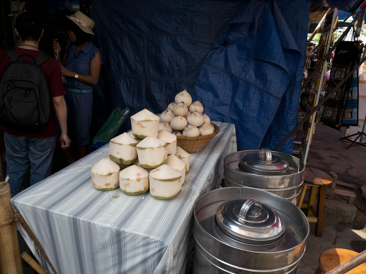 I checked into my hotel without further delay and began exploring. At the weekend market, I found some delicious street food like chocolate covered bananas (frozen), coconut ice cream, crisped rice snacks, and some amazing-looking iced coffee that was made by a dancing man holding two pots and pouring them while he spun. I also had a really great time with the fruits. Some of my favorites include longan, baby oranges, ripe mangos, and pomelo.