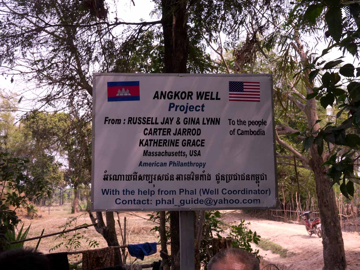 Our guide Pahl (Pronounced Paul) was the head of the Angkor Well Project, an organization that allowed people to sponsor the installation of a pump well. We paid a small amount of money and they choose a small neighborhood without a well. Then they spent several days installing, before dating the well and placing the sign that reads: