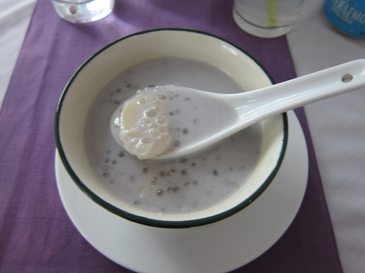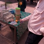 A woman will take a wooden pole and constantly stir the sap, making it whiter and more pure. When the sap is finished, it will either be put in a jar as palm sugar or put aside for making candy. Perhaps both.