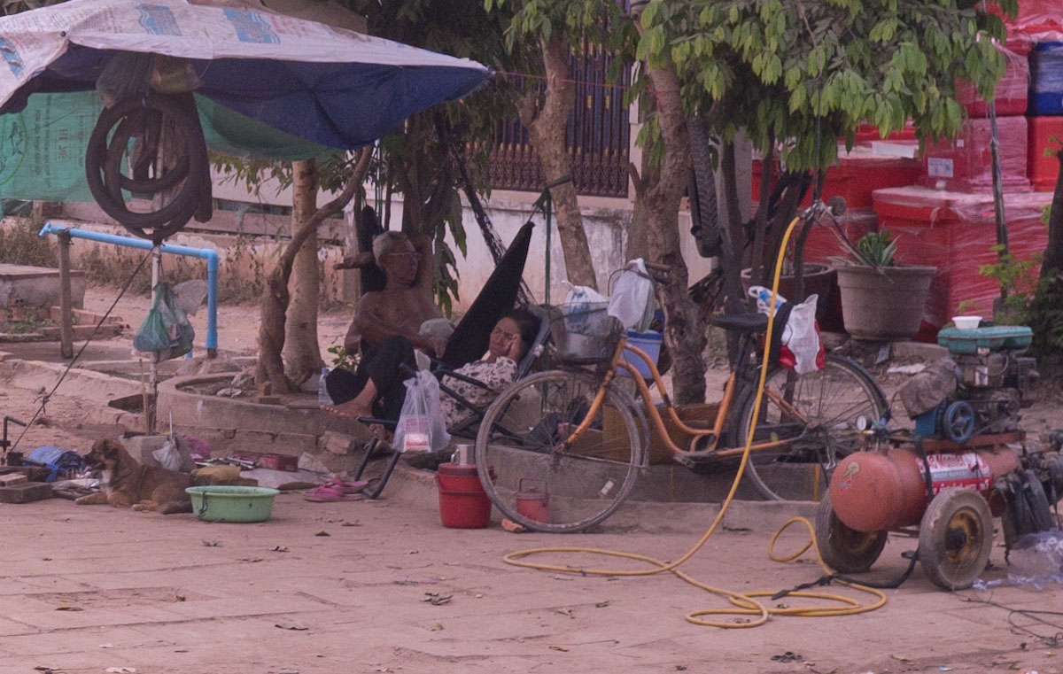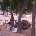 As we walk back to the neighborhood center, we notice that hammocks hang behind many of the store counters, cooler and cheaper than mattresses for a nap in the middle of the day.