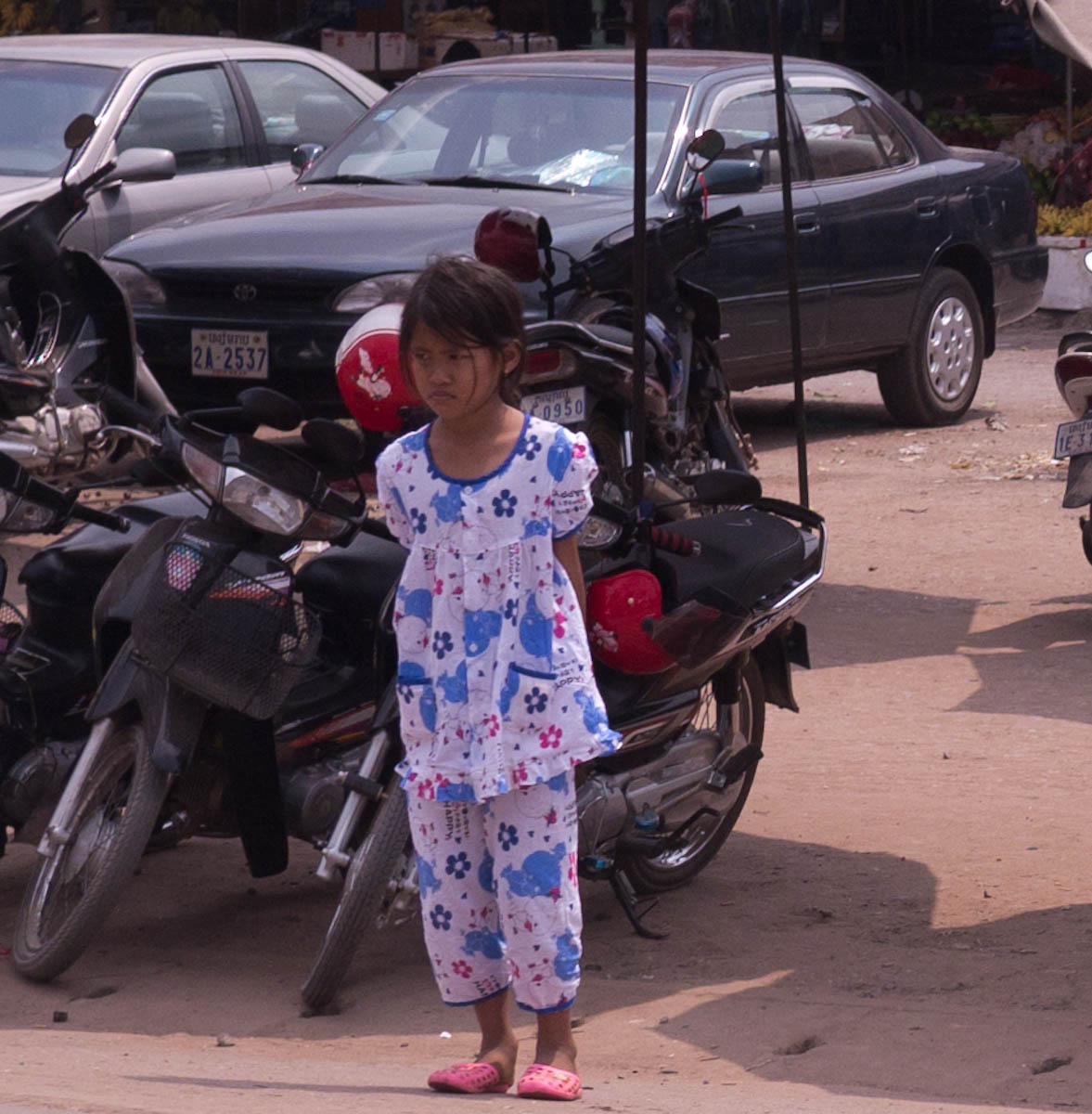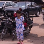 The children are covered with dust and smeared with dirt. Many of them wear “Ben 10” clothing or sweat pants and a t-shirt. They look at you with big, black eyes, unsure how to react to your appearance. In some villages, they will be manning a parent’s second stall, and will quietly say, “That is one dollar.”