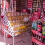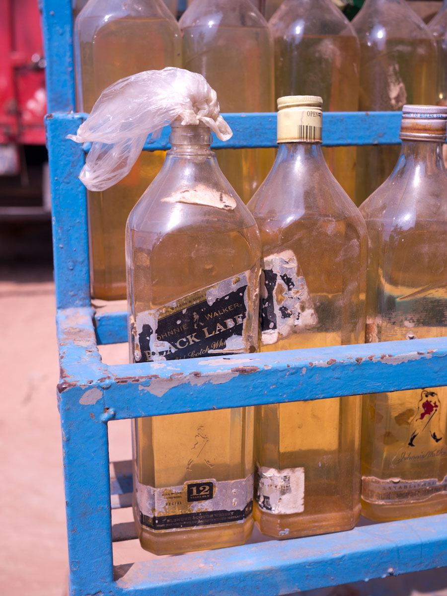 - Gasoline cannot be afforded in the big containers we use at home. Instead, gasoline is sold in bottles the size of the big Coca-Cola bottles. Very often they will use Jack Daniels bottles!