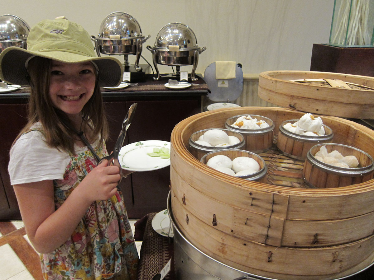 Out of my mom’s purse comes the glow-in-the-dark bouncy balls and the candy necklaces. We show how to wear the candy as necklaces and bracelets, and instruct the children not to eat the bouncy balls. Then we have our guide repeat the warning in their own language. Everyone here about 12 and above has to work, so when the children take a break everyone gathers and rests, watching us and thankful for an excuse to take a small break.