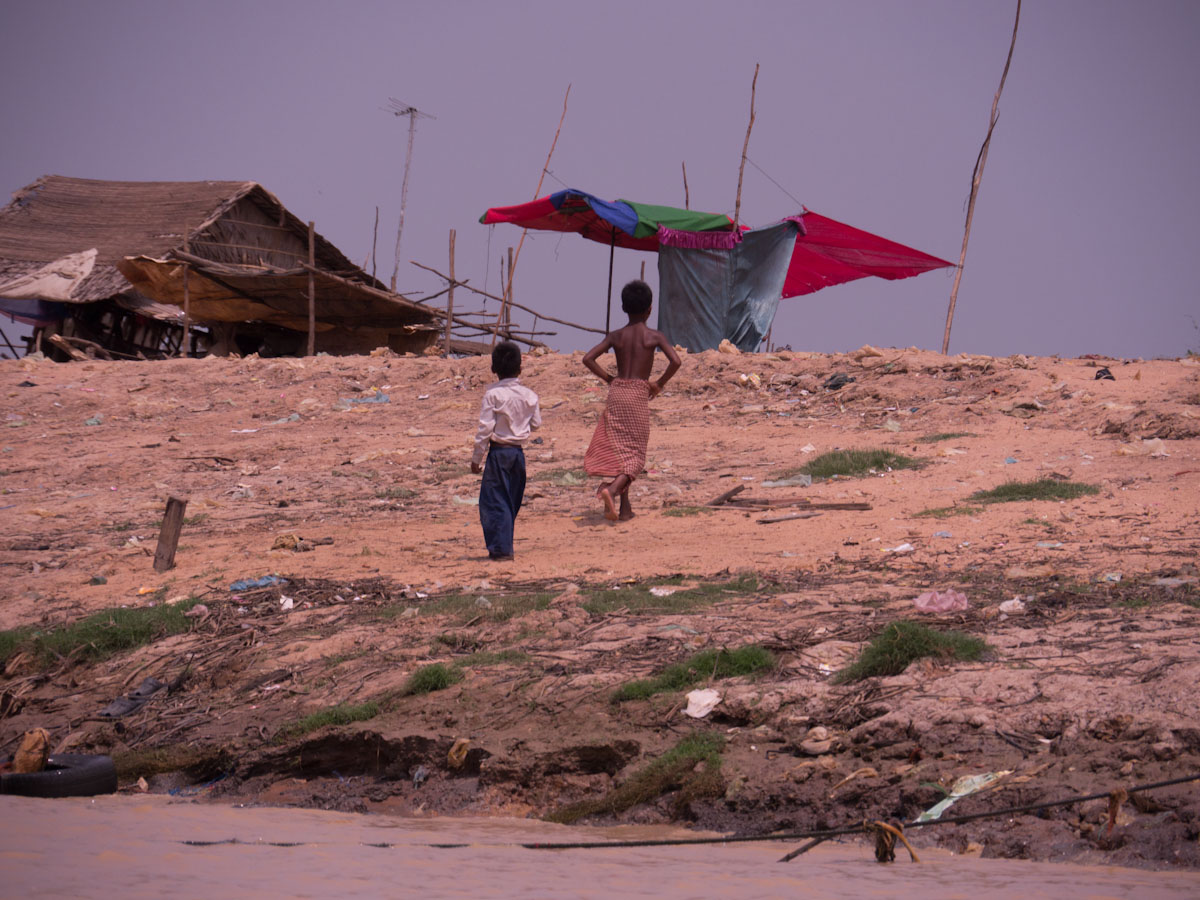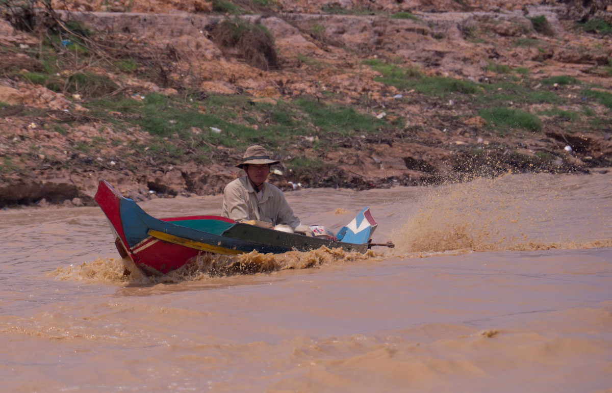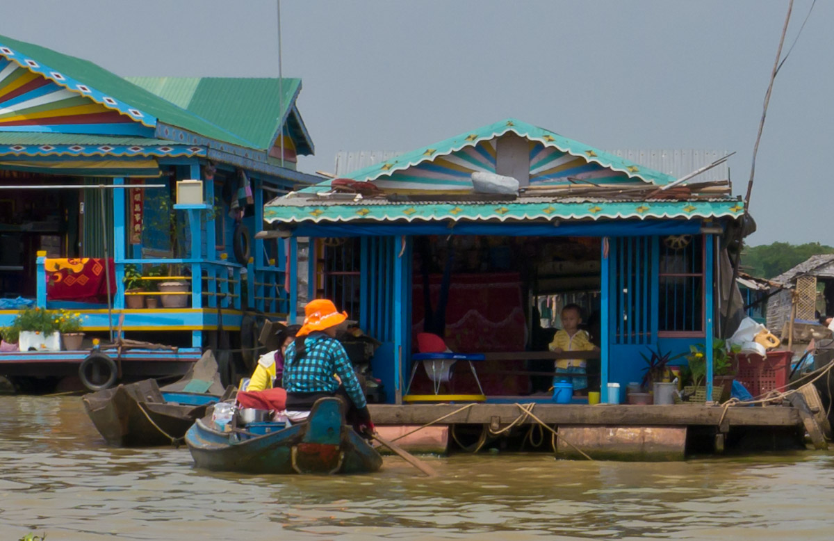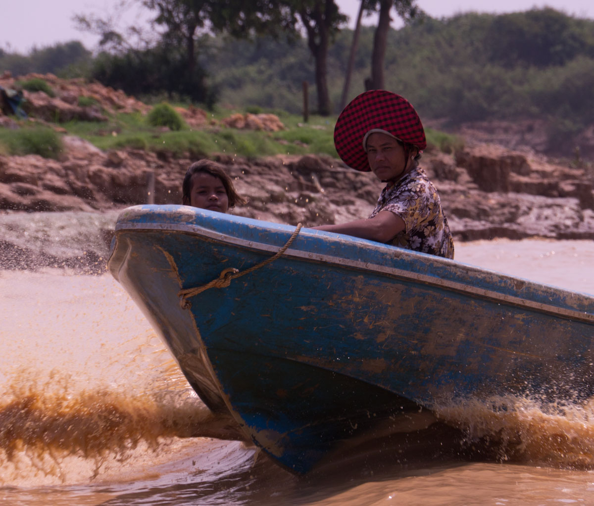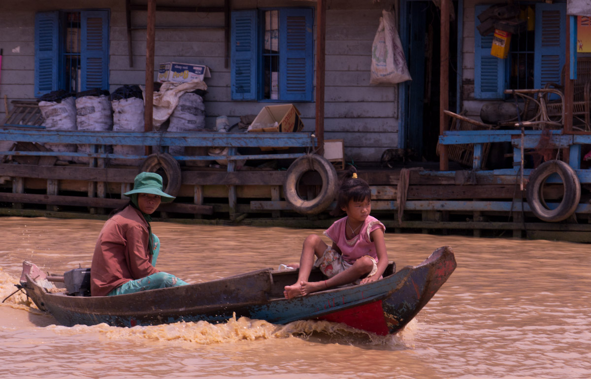 We were speeding down the river towards the floating village. The wind felt cool on my face but it didn’t smell very good. The water looked like my mom’s coffee drink she used to get from Starbucks. I saw lots of people in the river bathing and washing their laundry but I didn’t really think the water could clean much of anything.