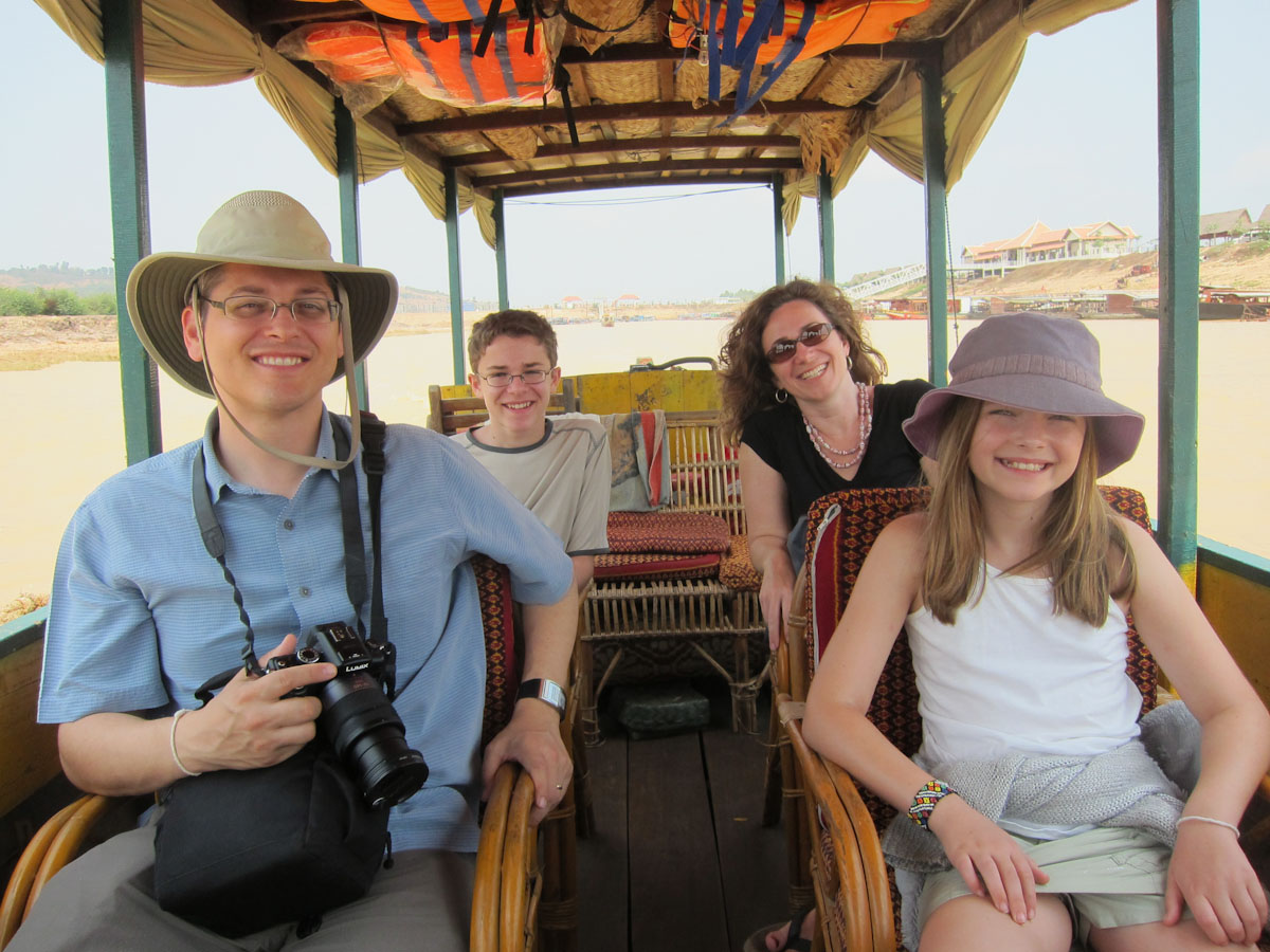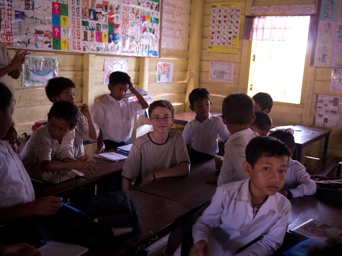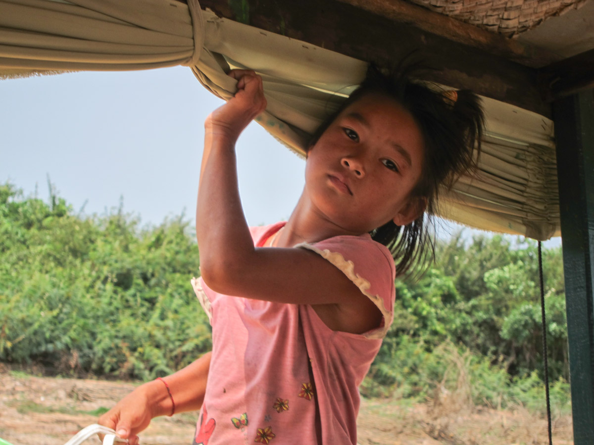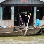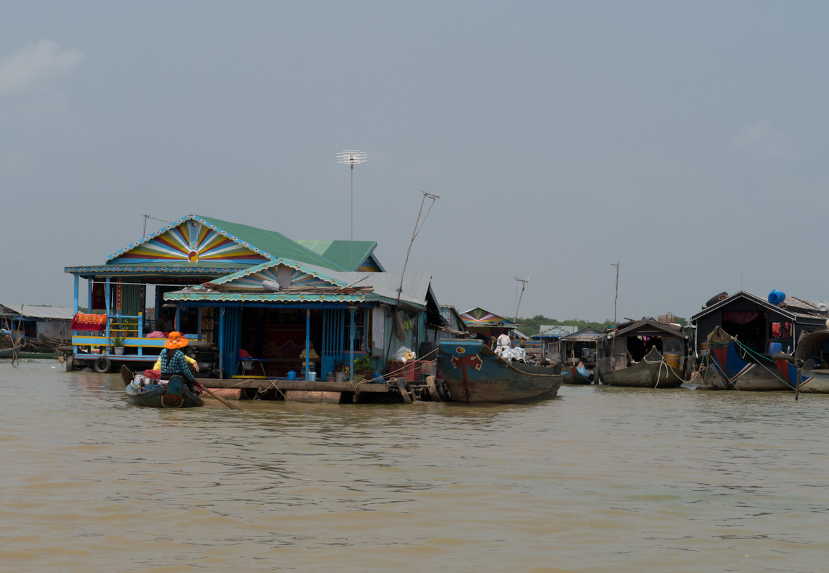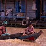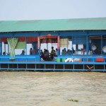 We were speeding down the river towards the floating village. The wind felt cool on my face but it didn’t smell very good. The water looked like my mom’s coffee drink she used to get from Starbucks. I saw lots of people in the river bathing and washing their laundry but I didn’t really think the water could clean much of anything.