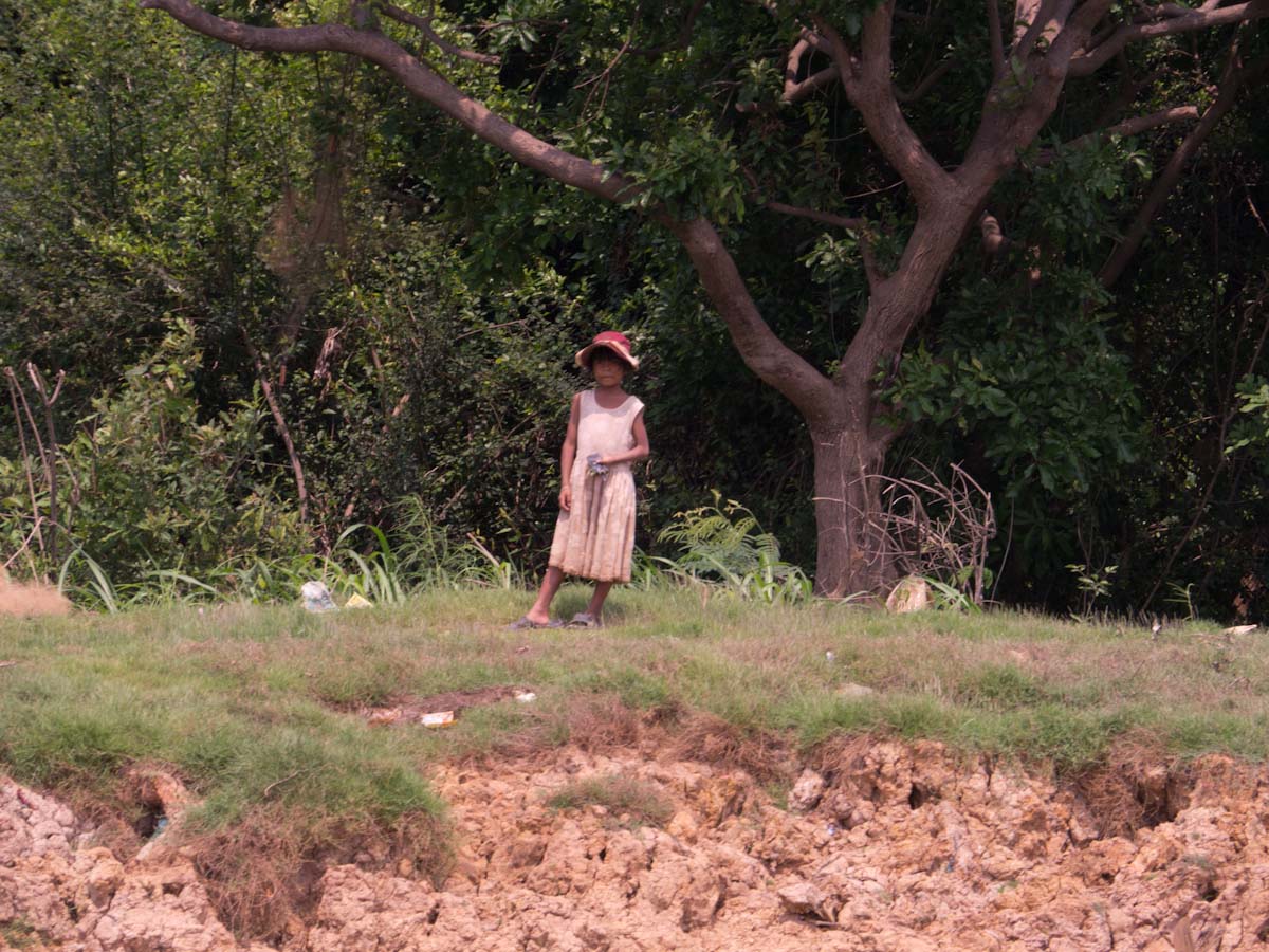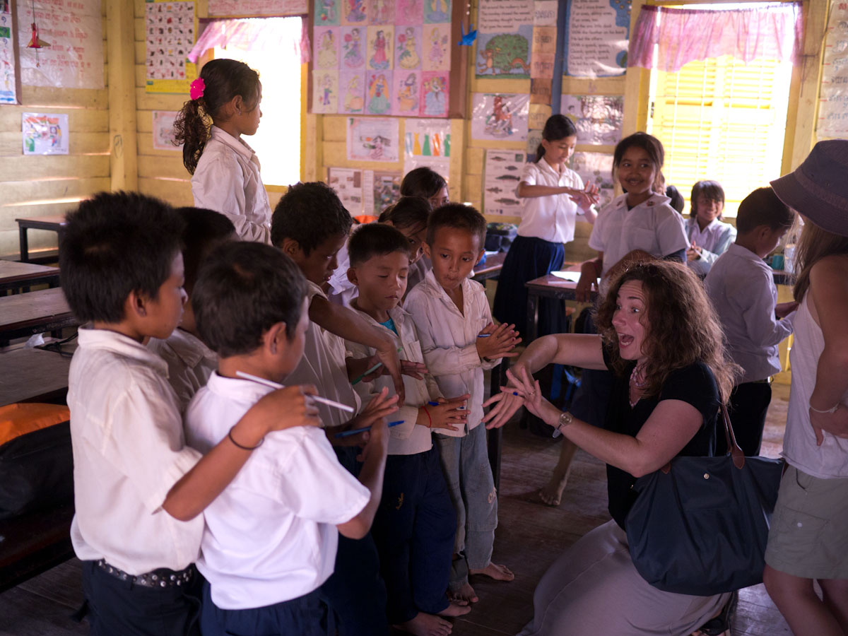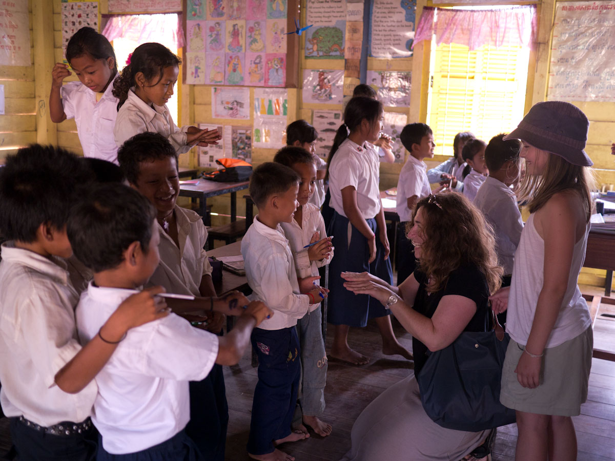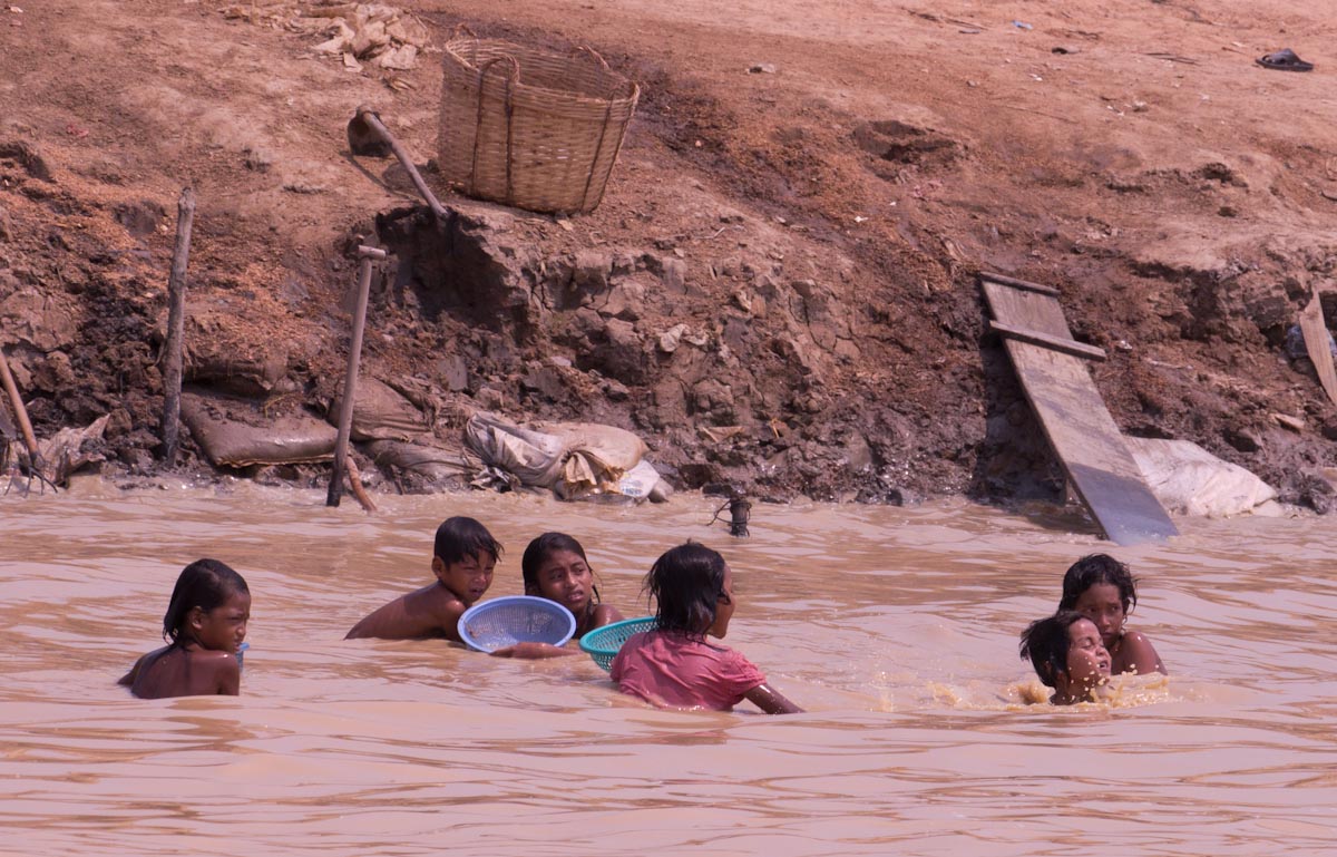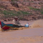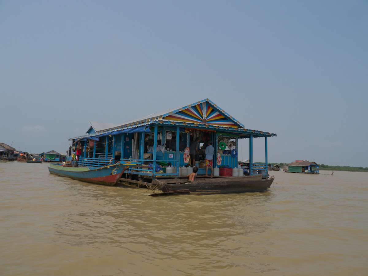 We were speeding down the river towards the floating village. The wind felt cool on my face but it didn’t smell very good. The water looked like my mom’s coffee drink she used to get from Starbucks. I saw lots of people in the river bathing and washing their laundry but I didn’t really think the water could clean much of anything.