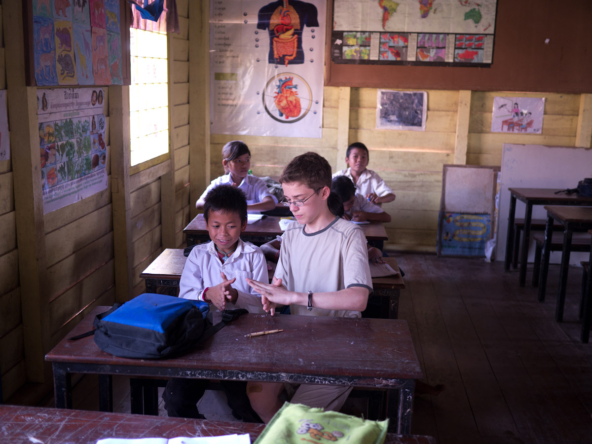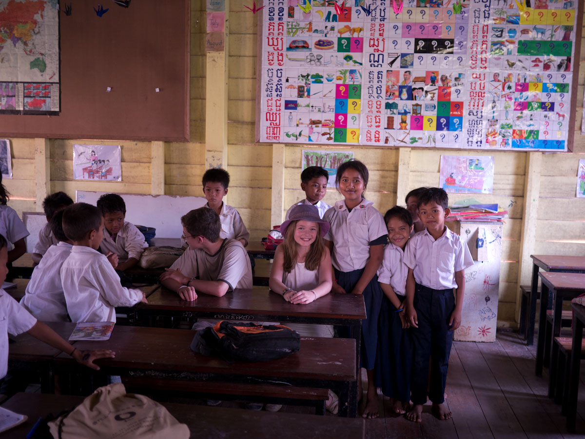 Mom and Dad started talking to the teacher, so Carter and I sat with the kids. The boys immediately started talking to Carter in Vietnamese, but the girls were a little bit more shy. I watched my brother show the disappearing finger trick to the boys until a girl came over to me.