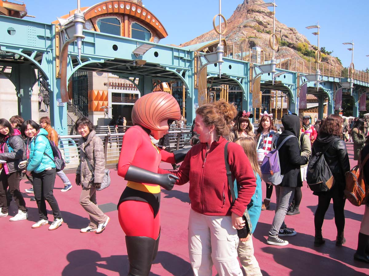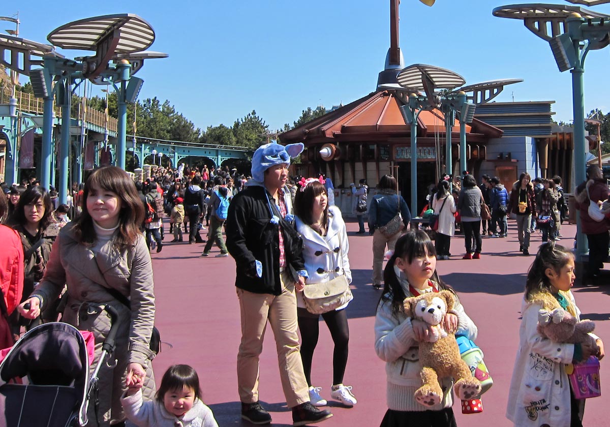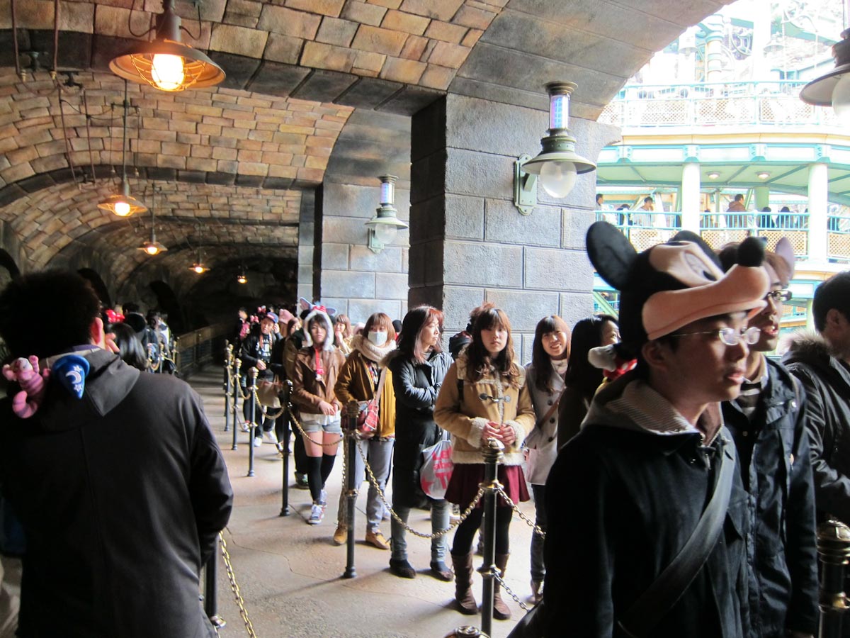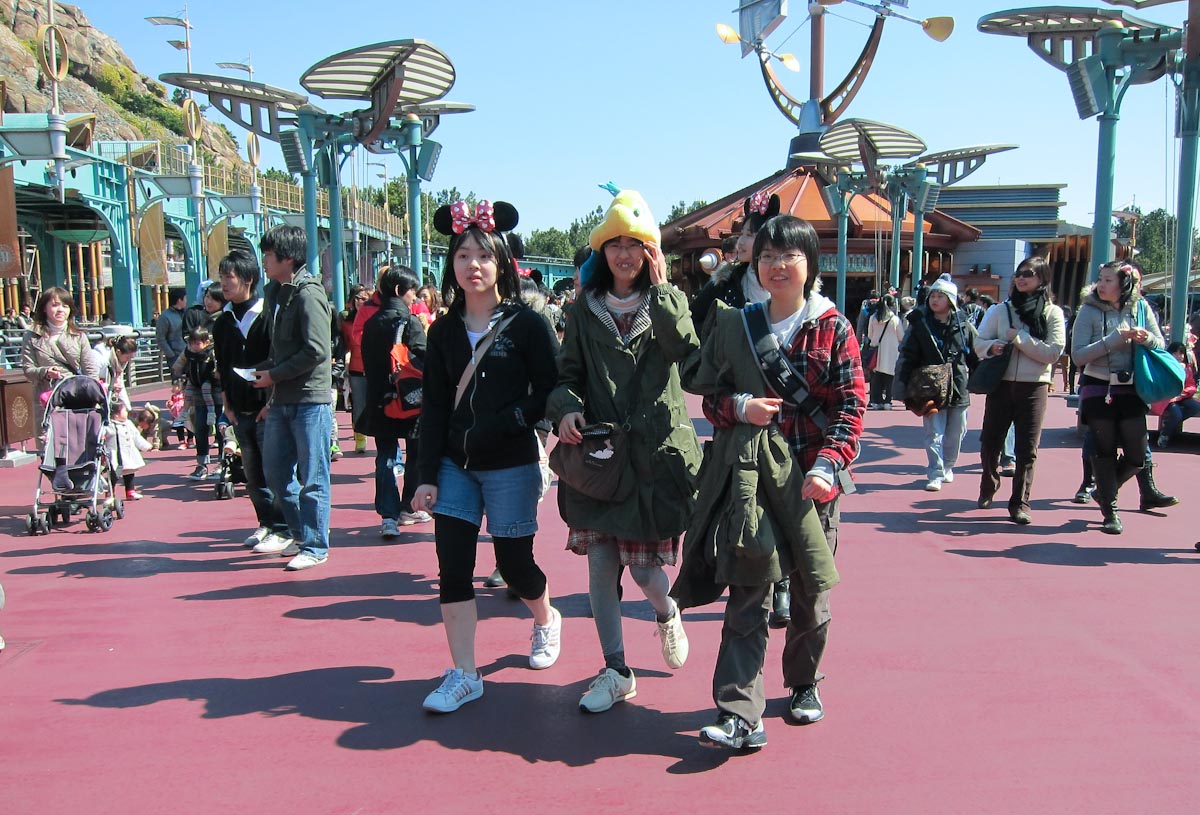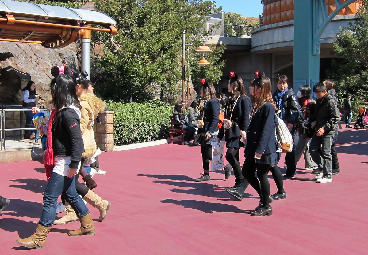 Yes there are long lines but you can manage this through judicious Fastpass use. Meanwhile, the inevitable waits gave us the chance for people-watching. The Friday crowd at Disney Tokyo is predominantly teenagers in all kinds of strange fashions, and the vast majority sport Disney accessories and costumes, which heightens the festive atmosphere.