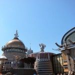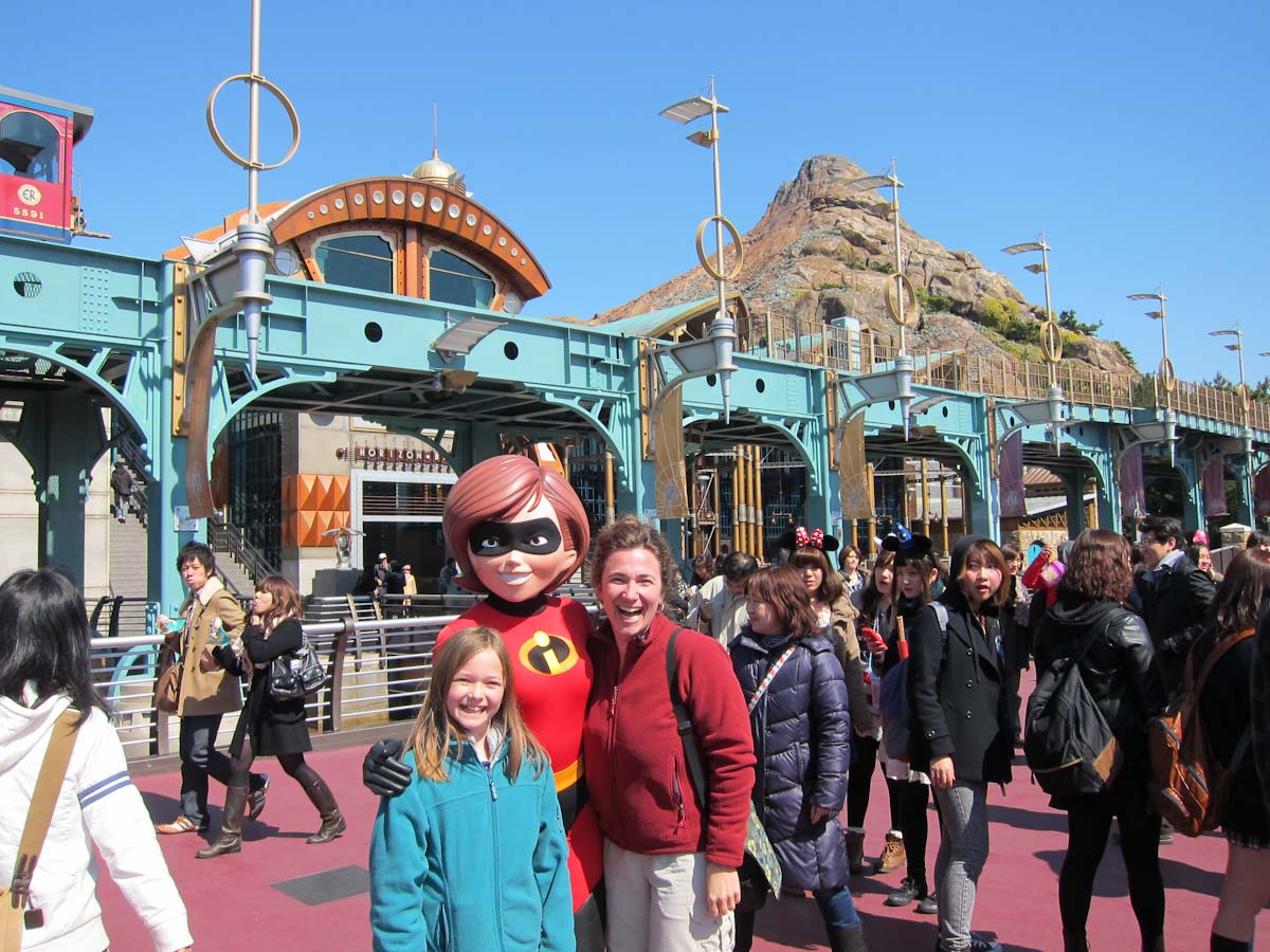 The park is laid out like a volcanic island with a lagoon in the middle and different lands all around. Our favorite was a full-sensory motion ride called Stormrider that sends you on a helicopter flight into the heart of a class 5+ hurricane that threatens Tokyo, so you can defuse the storm with a special missile. The ending is quite a surprise. The Indiana Jones ride is all different and brings out a stunning array of 3D, animatronics, and space—mountain like effects inside a dark cavern. The popcorn is flavored differently in each land – we tried a small box of each as we toured the park and declared strawberry the surprise winner.