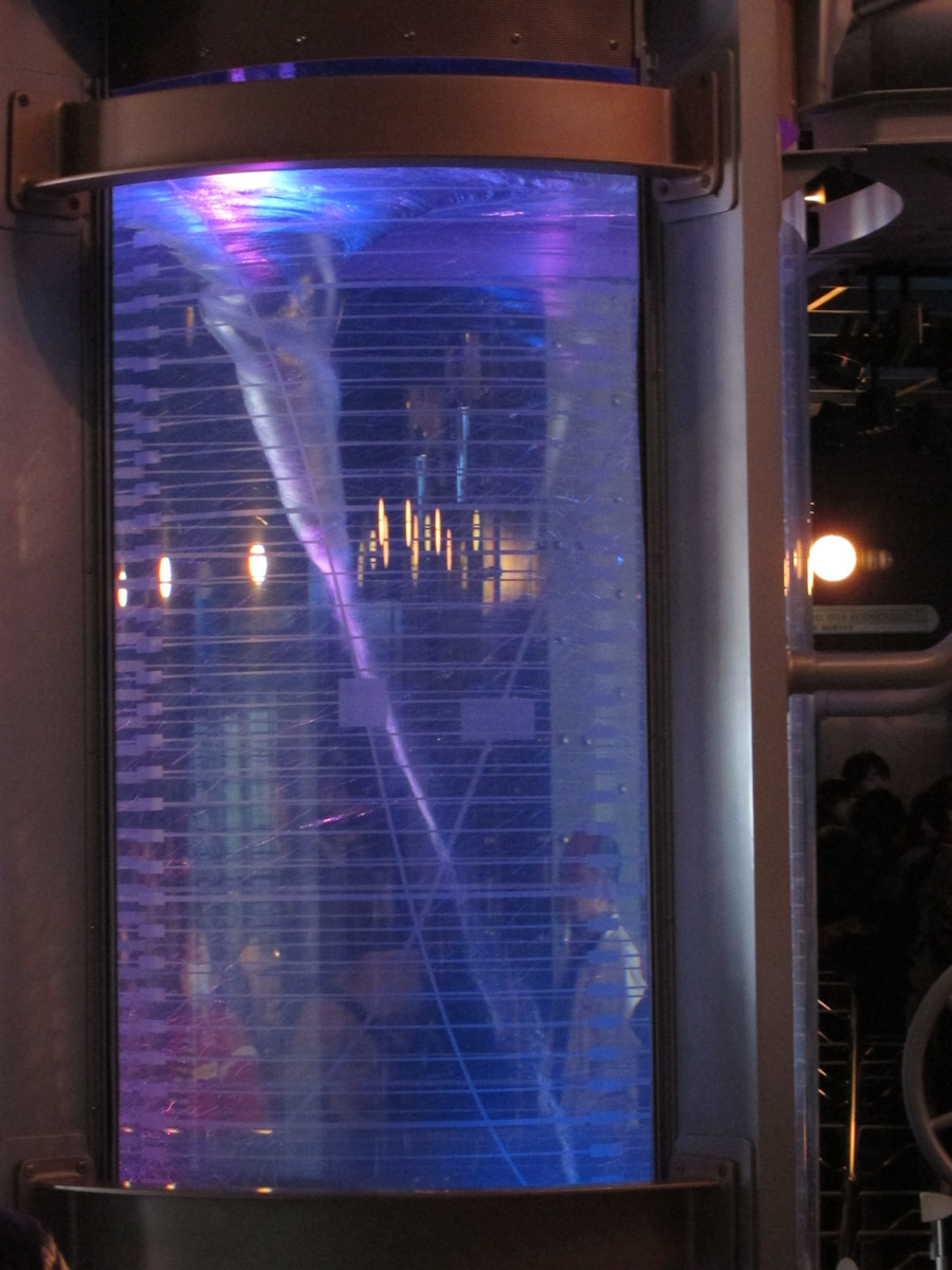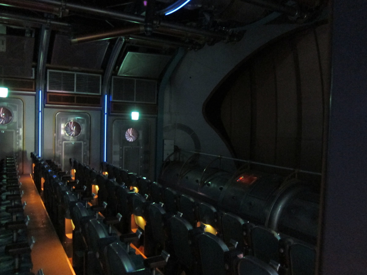 We left the show early to get a jump on the crowds, wandering back under the volcano and into the Jules Verne land. Carter and I decided we just had to enter the 90-minute long line for the major attraction there "Journey to the Center of the Earth." The girls shook their heads and left to go see the Mermaid Lagoon.