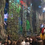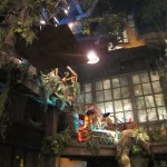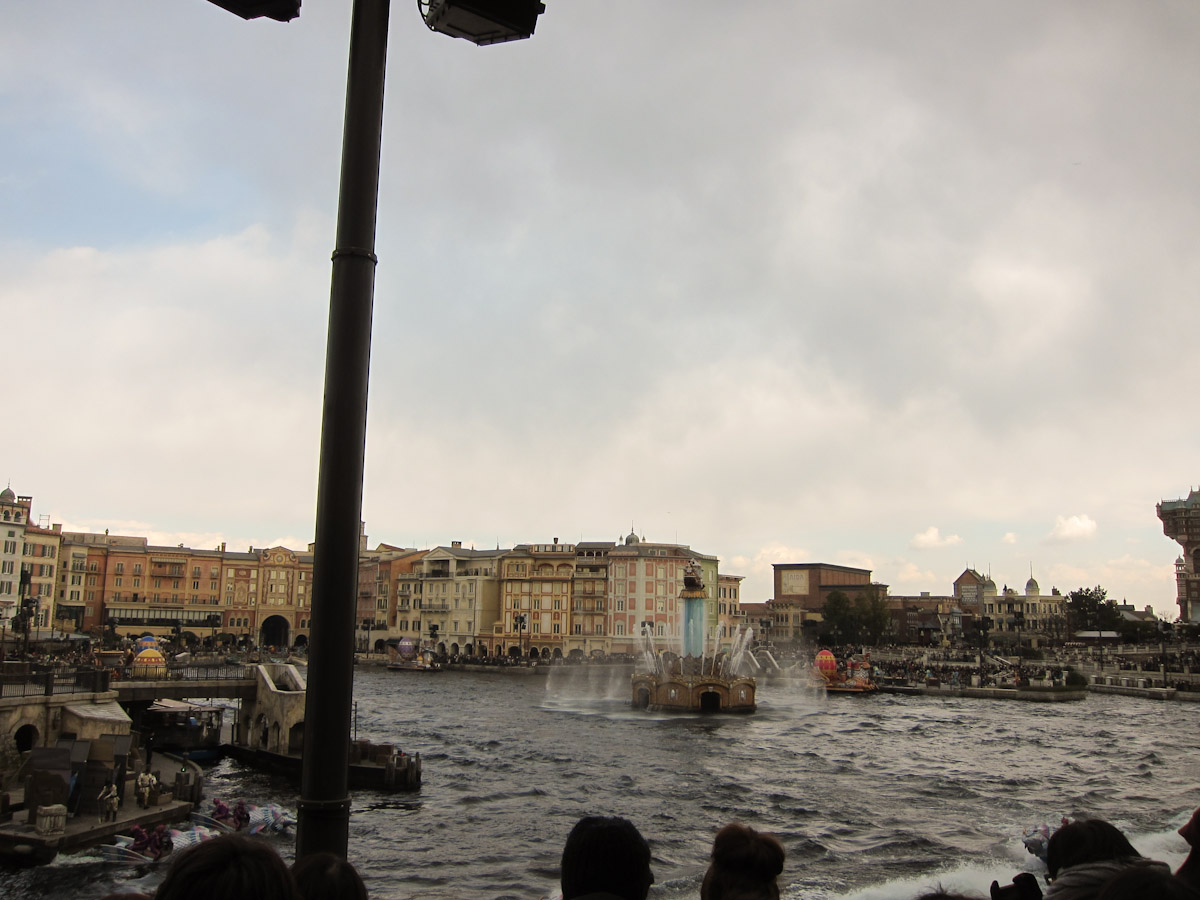 Around 2:30 a good portion of the day’s 40,000 park-goers gathered around the central lagoon to watch Mickey in the lavish water production called Mythica. Overhead the sunny day was turning cloudy. We arrived late and stayed only to catch a glimpse of a rousing motorboat sequence.
