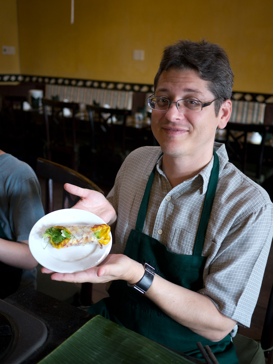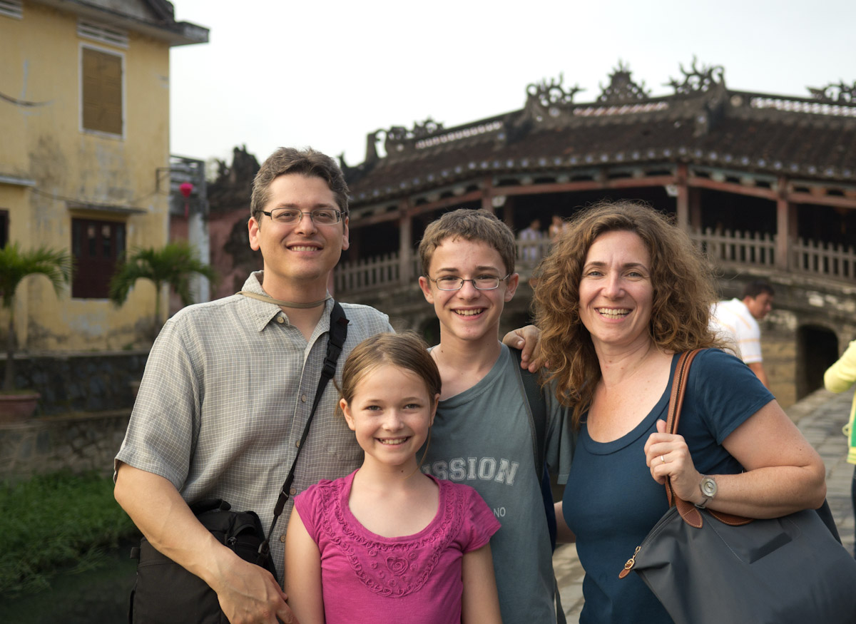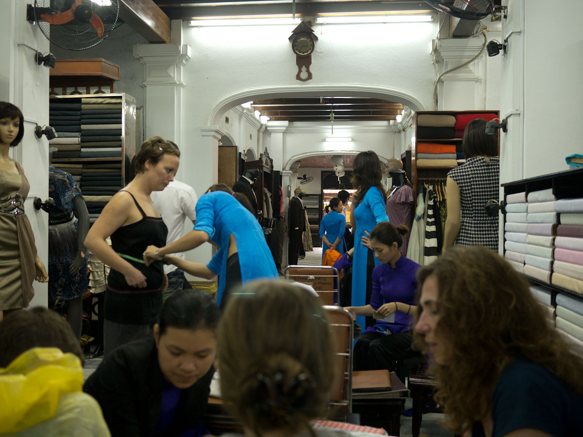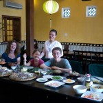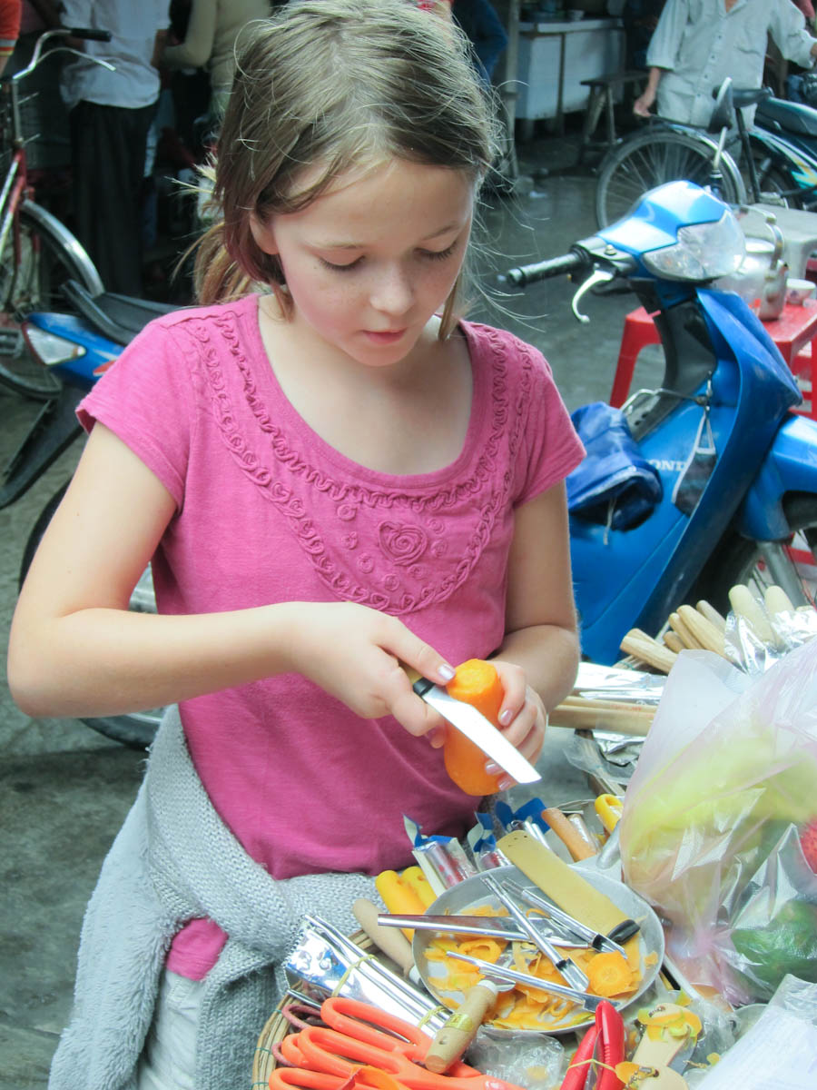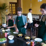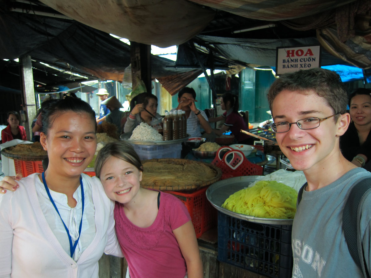 After settling in, we headed to Hoi-An for a hands-on market tour and cooking class at the Morning Glory restaurant. Although cooking is usually Gina's favorite, the whole family enjoyed discovering new fruits and vegetables and then making our own spring rolls, marinated chicken, pancakes, and green mango salad. Afterward, Katherine and Gina discovered the tailoring shops of Hoi-An which are especially good for casual ladies wear.