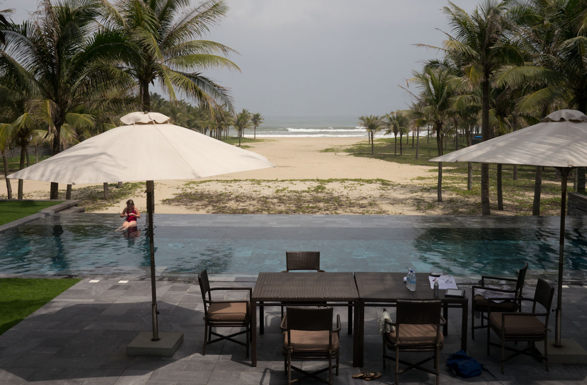 We stayed nearby at the exquisite Nam Hai resort that is one of the jewel properties for the year. A "villa" at the Nam Hai includes four separate buildings - a central pavillon with swimming pool and a view of the ocean, two bedroom suites, and a live-in butler's quarters. Our butler, Ms. Phuc, was so enthusiastic and happy, we felt right at home instantly.