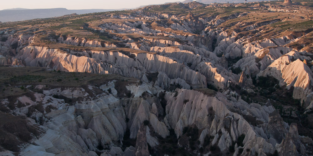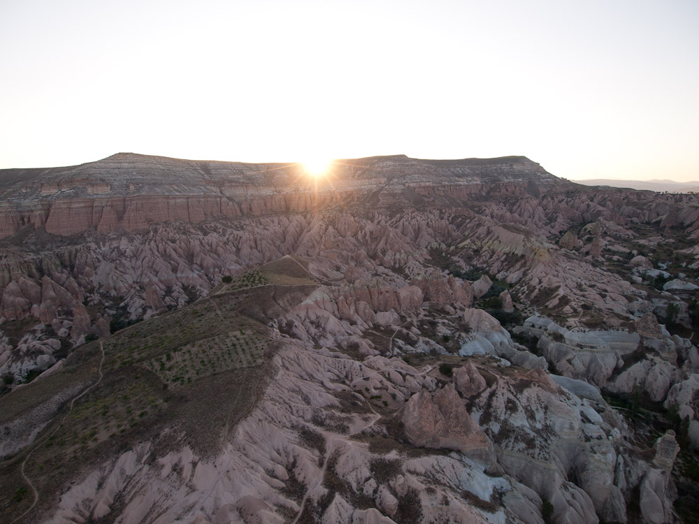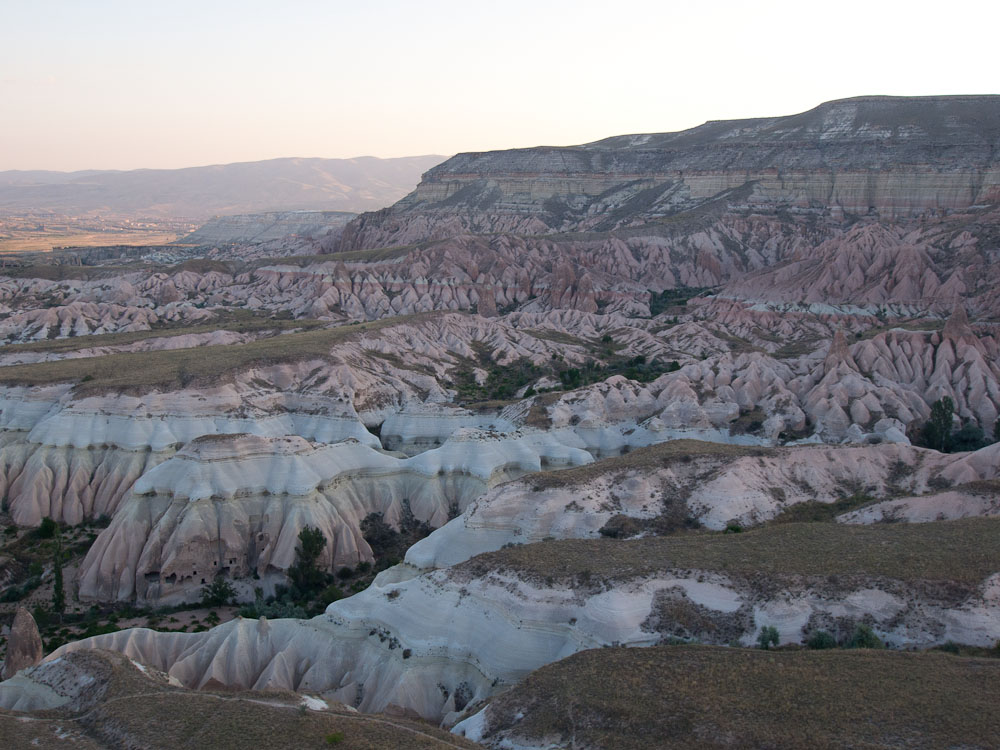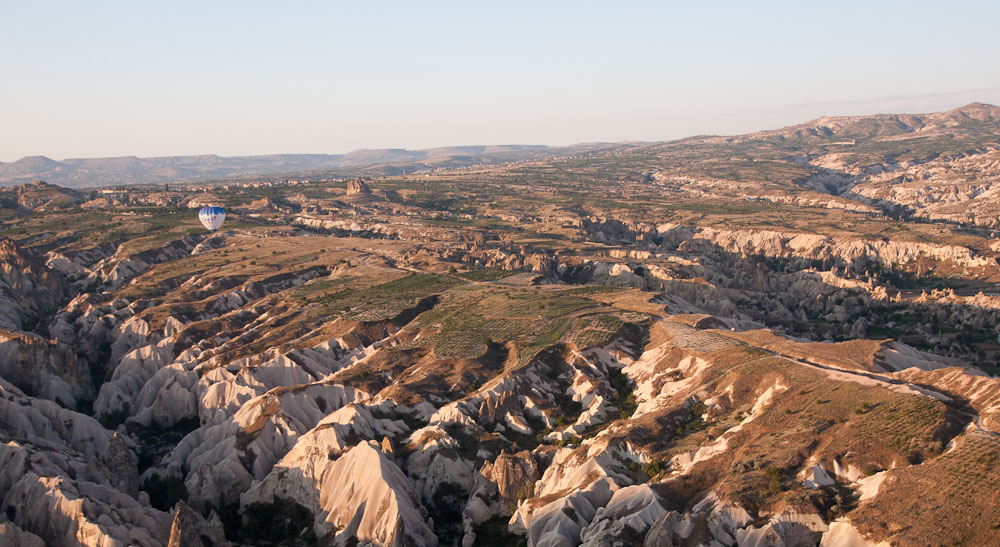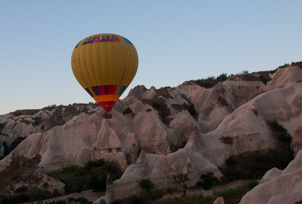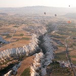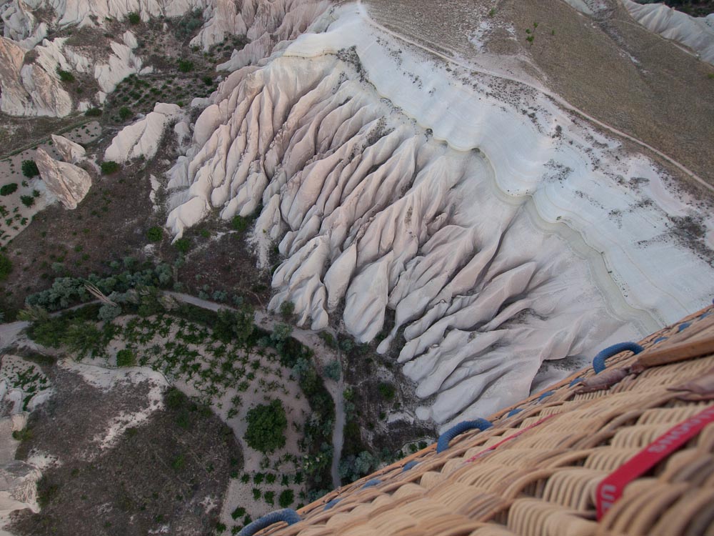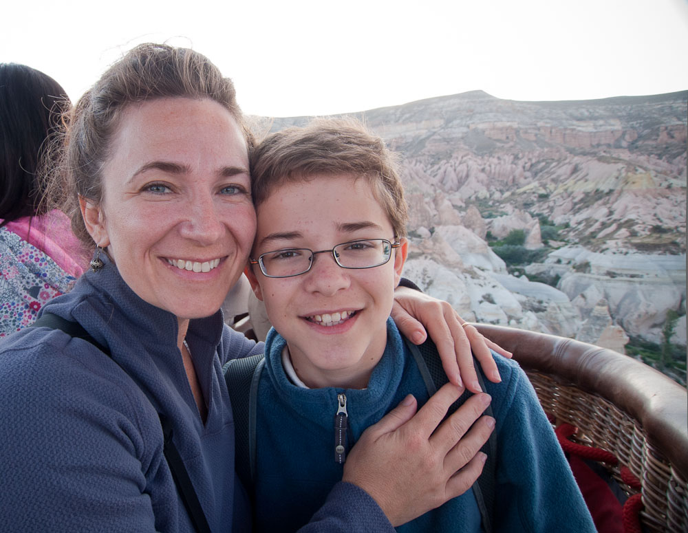 Cappadocia is often called the land of “fairy caves” because of the distinctive geological formations that have evolved over thousands of years of volcanic activity and natural erosion. We had never seen anything like it, and certainly never from the perspective of a giant wicker basket supported by wire cables and an oversized Gymboree parachute!