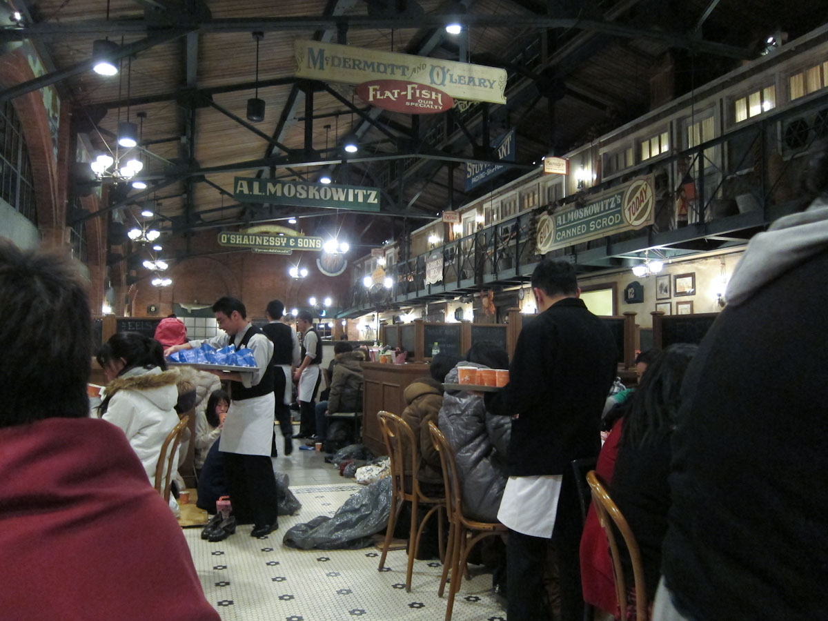 He brought us on what seemed like a secret shortcut and dropped us off at a “New England Clam Shack Themed” restaurant. Quite a few people were closing in on the already packed doorway, and we made a beeline for our safe haven. Only the two people behind us got in before the doors were closed. Phew!