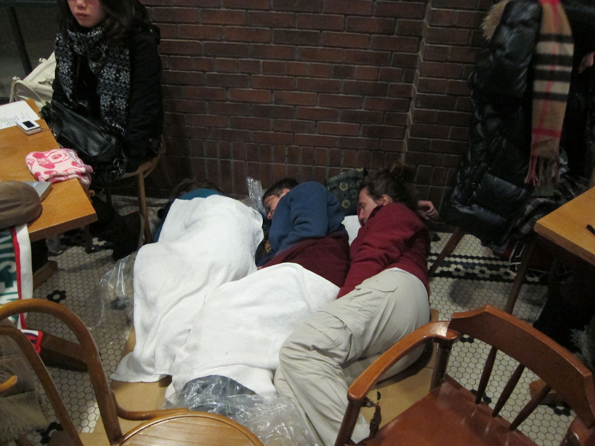Dad had been thinking about “worst possible scenarios” as he always does, and he decided that if morning came around and the trains still weren’t running, and the roads were still congested, then we would have to walk for 7 hours to get back to the ANA Intercontinental.