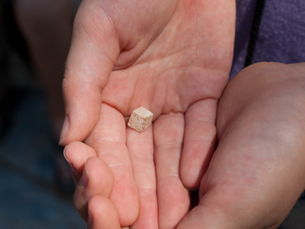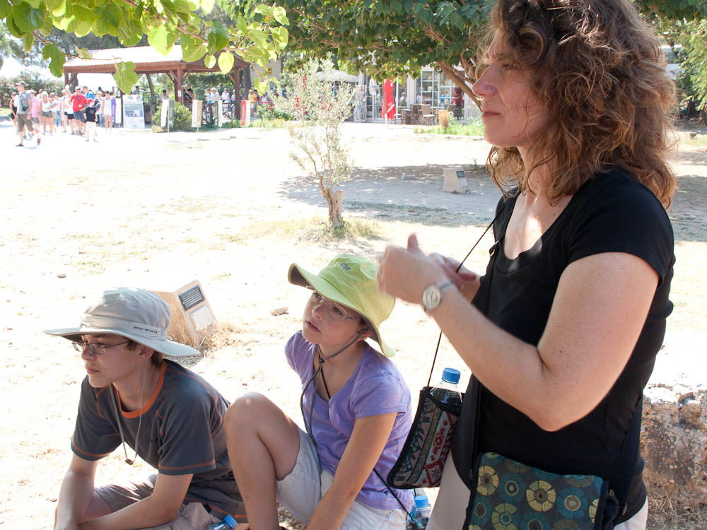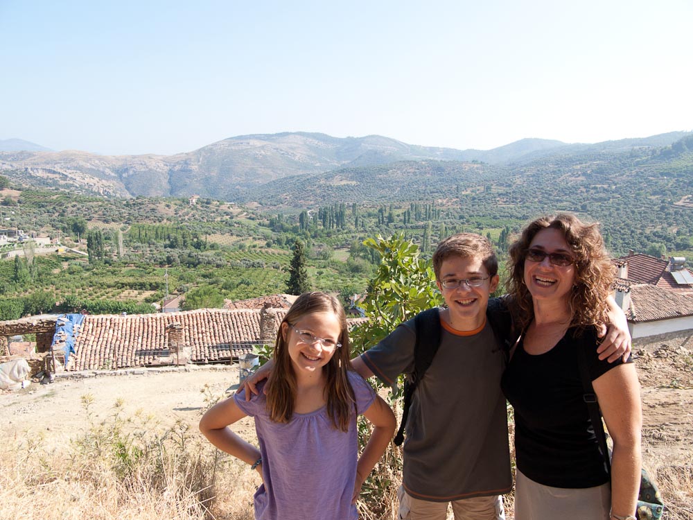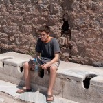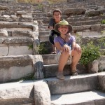 Walking along the road, Katherine encountered a funny cubic stone that we realized was a piece of mosaic! However since mosaic pieces are so numerous in Ephesus it was just lying there on the ground. While it would have made a dandy souvenir, we threw it back for a future archeologist to find.