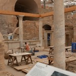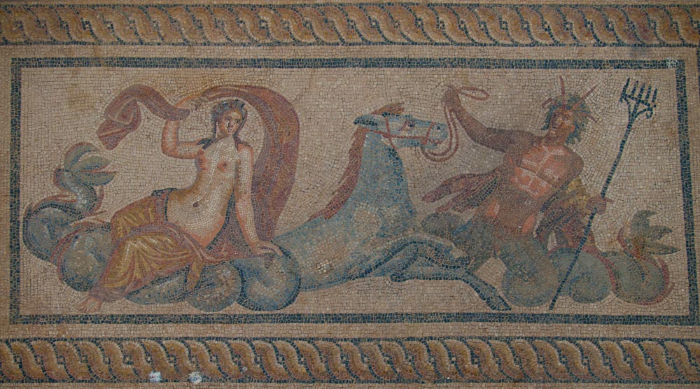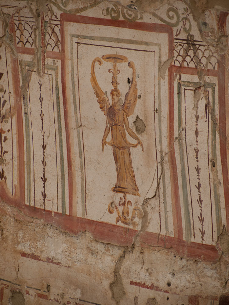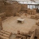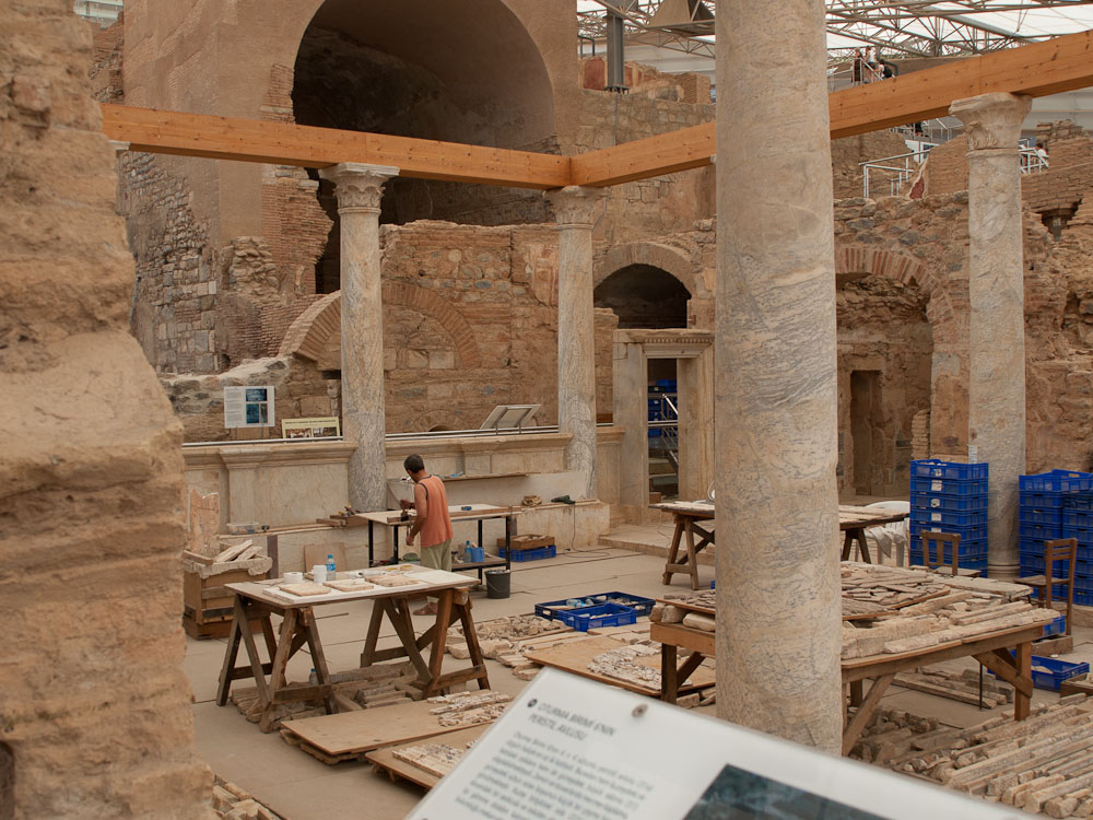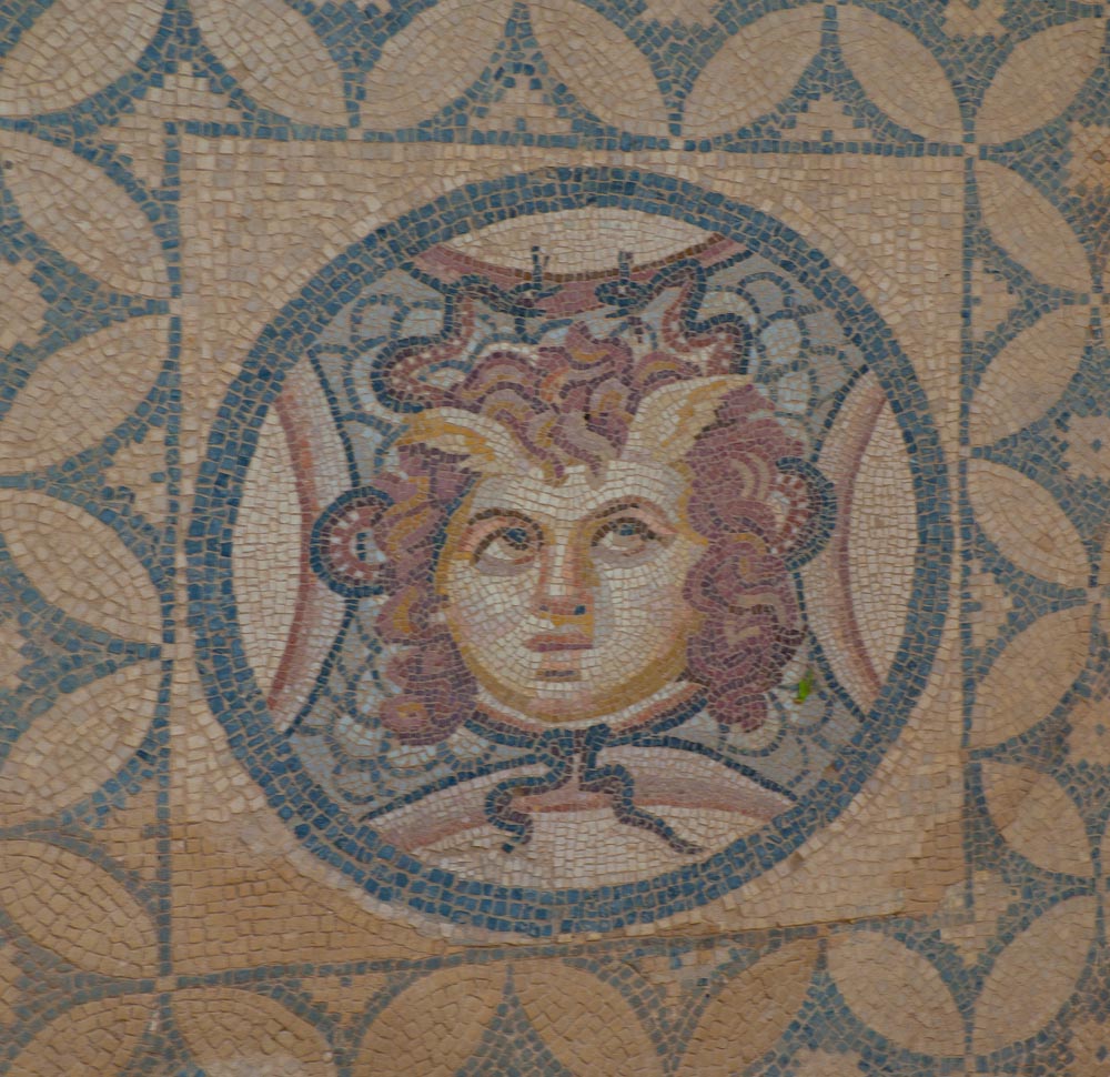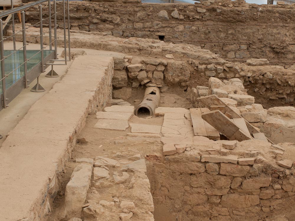 We were all really impressed by these features and especially the mini-museum on the side of the hill. Here they have erected a giant roof, and inside, you can wander through six different Roman apartments. Many of the mosaics and the wall paintings are restored or intact with excellent quality, in contrast to Pompeii where the best ones have been shipped off to museums. Don't miss this, and thanks to Ed Dresner for advising us not to miss it either. As there is active work on this site, it should get better every year.
