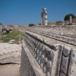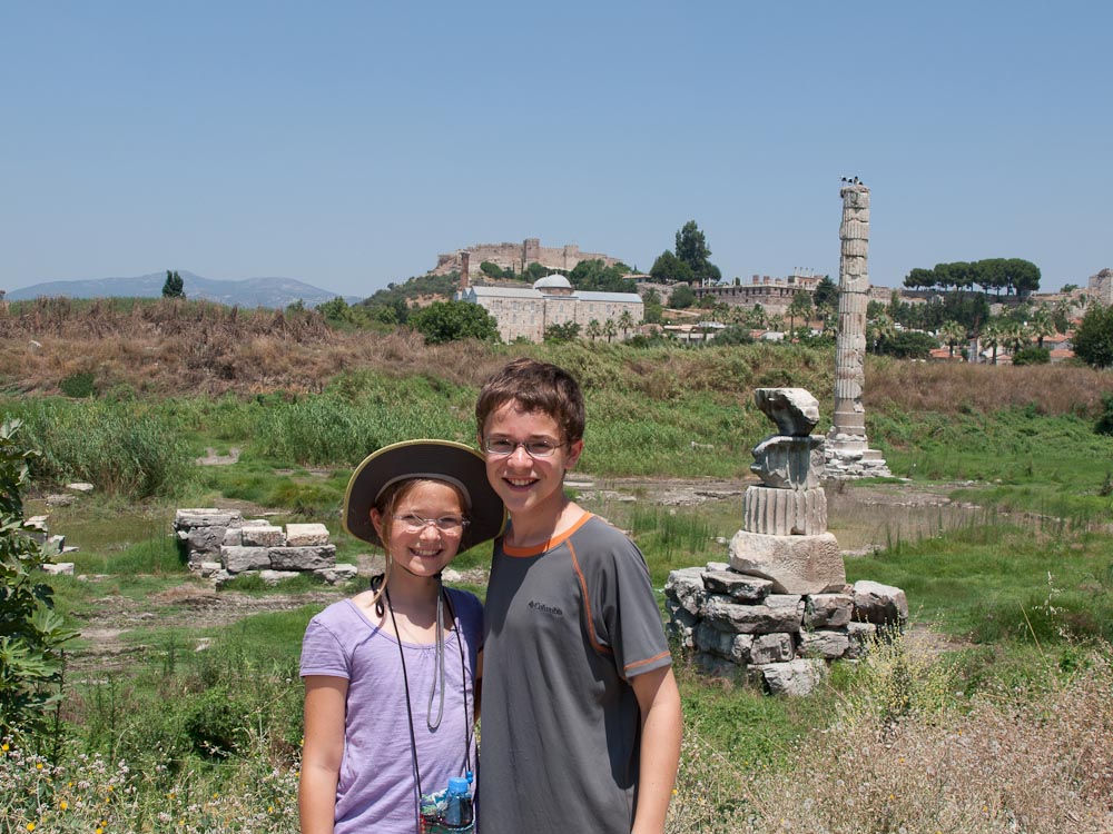 In the second relocation, the city was organized around a Temple of Artemis. She was a mother goddess for these people. The temple they built had 128 massive pillars (only one has been re-erected today) and was considered one of the seven wonders of the ancient world. Counting the statue of Zeus at Olympia (only a few bits from the workshop to build the statue remain) and the Egyptian Pyramids, that made this the second of the three ancient wonders we hope to see this trip. (The others we will miss are: the lighthouse of Alexandria on the shores of Egypt, the tomb of King Mausolus also in Turkey near Bodrum, the Colossus at Rhodes (Greek island), and the Hanging Gardens of Bablyon in Iraq. Thank you Antony and Secil!)